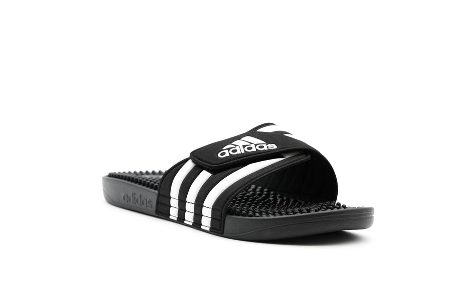 These adidas Adissage slides have a flexible nubby footbed that massages hardworking feet and a bandage upper that adjusts for a custom fit.