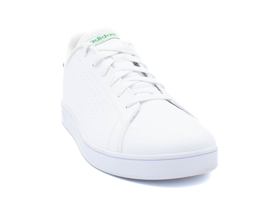 These men’s Advantage Primegreen cloud white/cloud white/green court sneakers by Adidas provide classic styling with sustainable comfort. Made of synthetic upper containing 50% recycled content, these casual sneakers have a round toe and lace-up closure. Along with perforated 3-Stripes detail at the quarter, features include a lightly padded collar, soft textile lining, Cloudfoam Comfort sockliner for superior cushioning, and a durable rubber outsole.