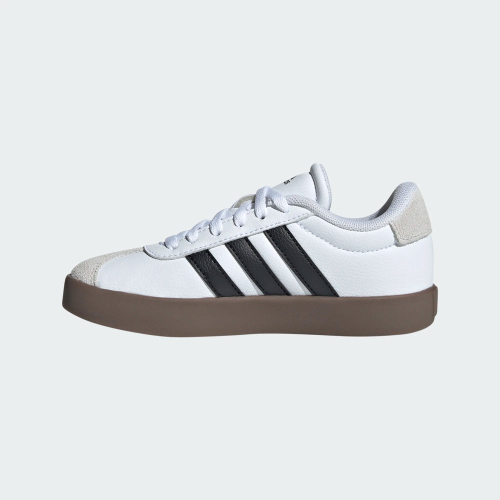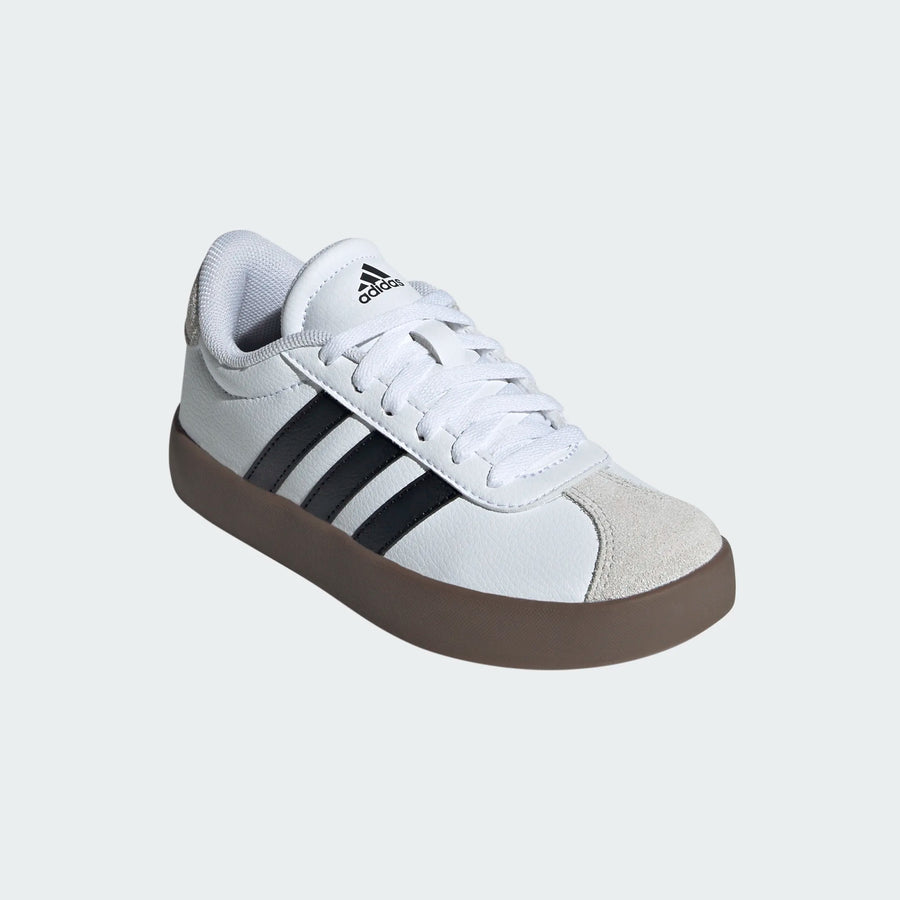 Get ready for fun and play with the VL Court 3.0 shoes, designed for kids who love to move. Inspired by T-toe trend, these unisex shoes are a perfect pick for everyday wear and skateboarding adventures. Crafted from synthetics and real suede leather, they promise durability and comfort. The classic lace closure ensures a secure fit, while the non-marking rubber outsole offers excellent traction. Enjoy the future of classic sportswear with these timeless shoes.
