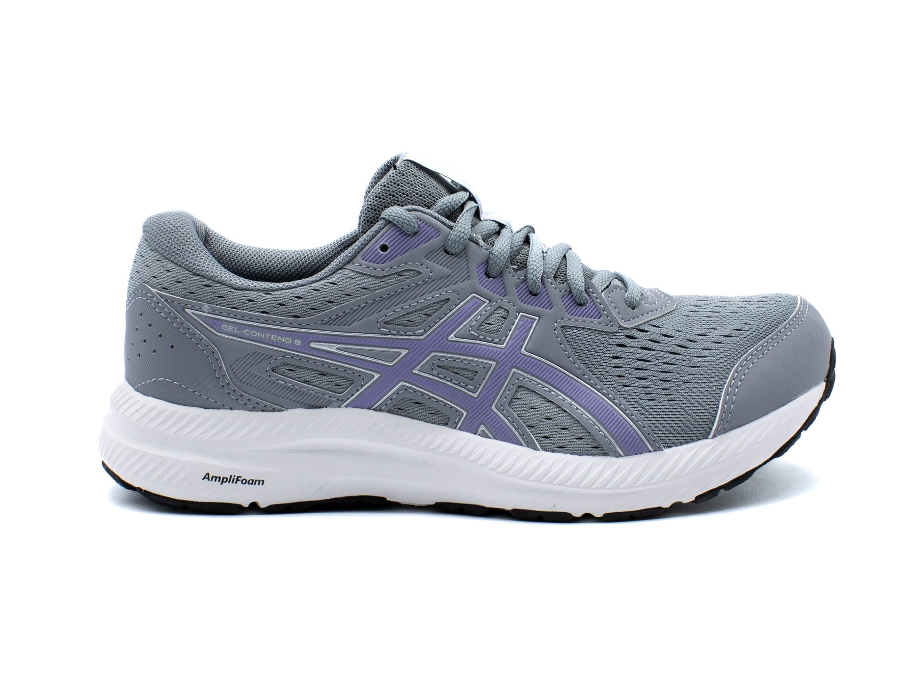 The ASICS Gel-Contend 8 women's running shoe provides good cushioning, support, and durability. A jacquard mesh upper stretches with the foot’s natural motion and creates a comfortable fit. Meanwhile, the synthetic stitching on the overlays helps create a more supportive foothold. The midsole features GEL technology and AmpliFoam cushioning. These technologies help increase durability while creating a softer feel underfoot.