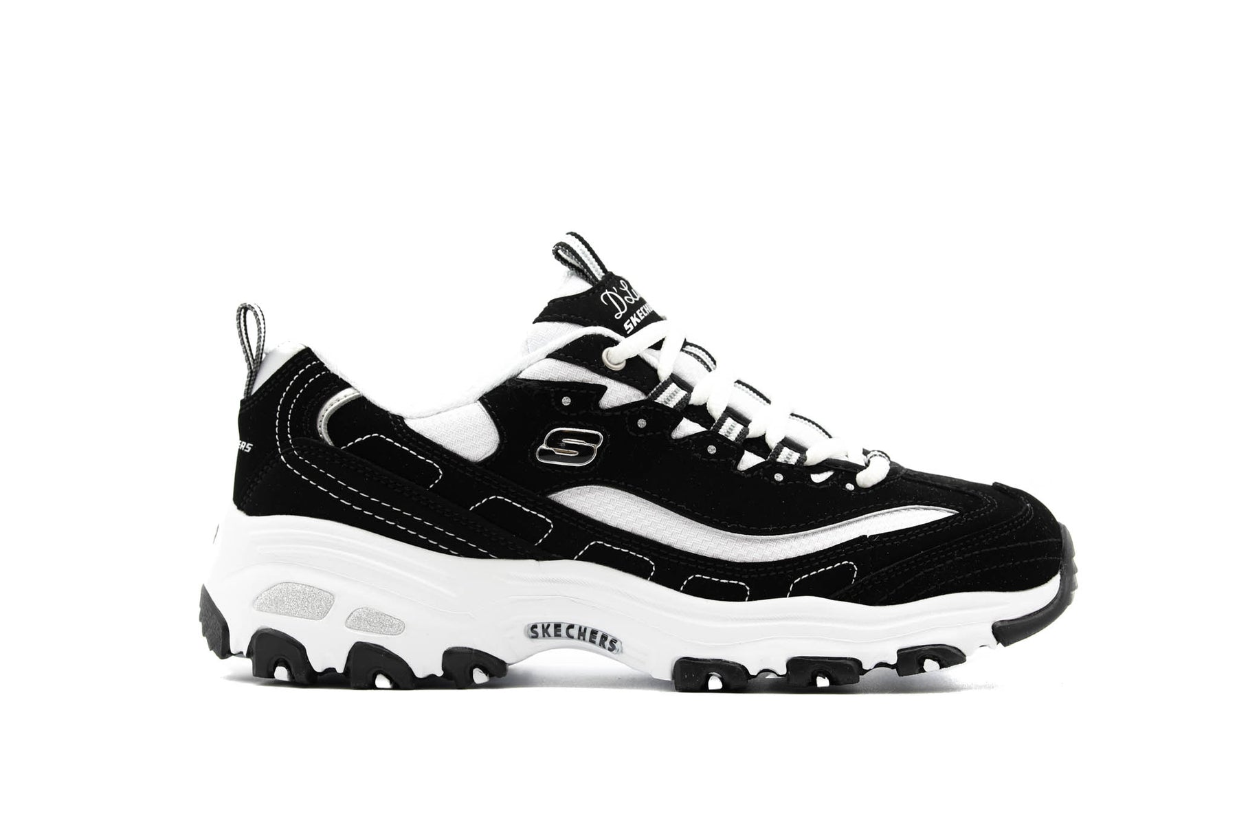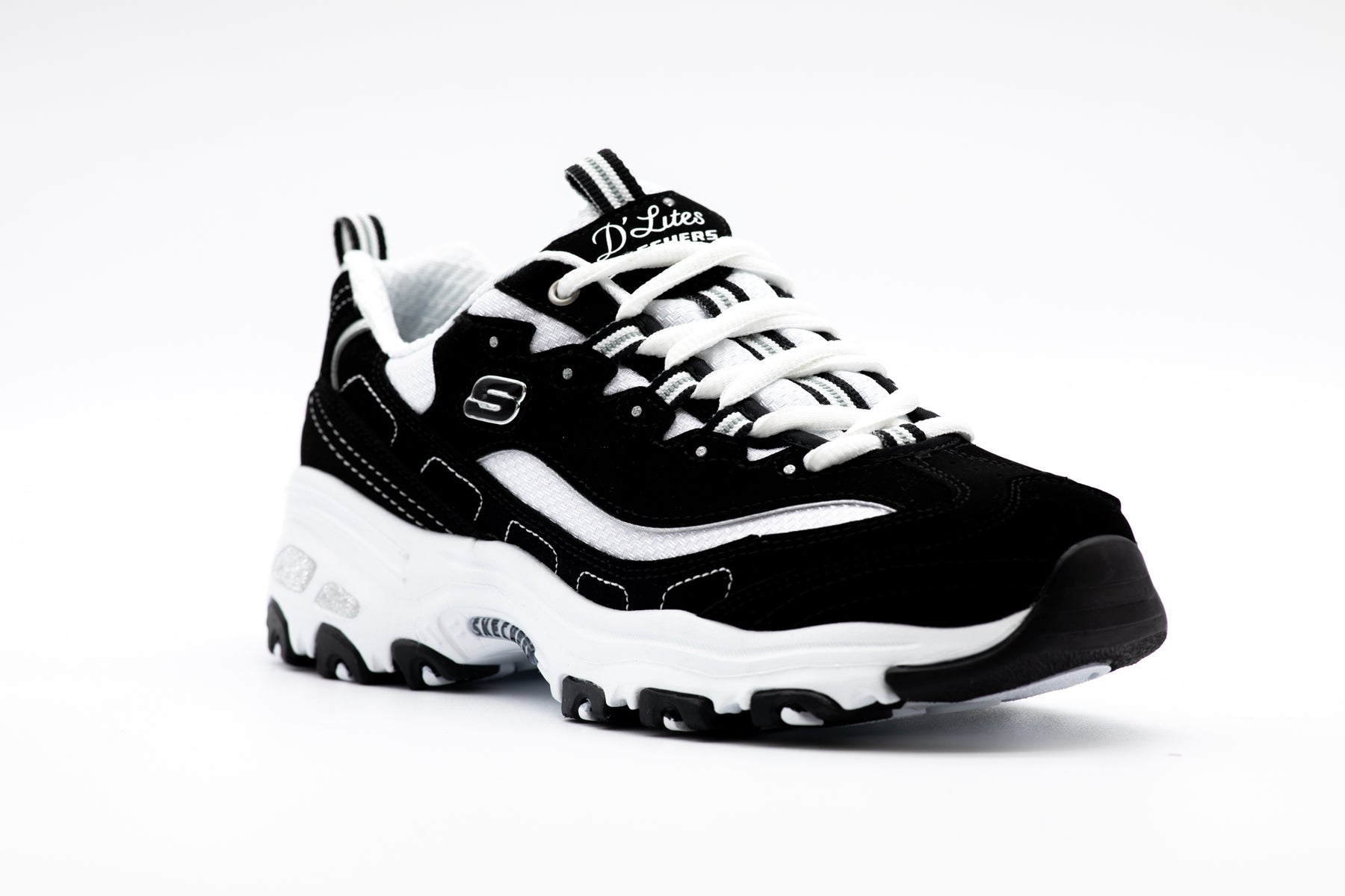 Style goes in full bloom with Skechers D'Lites® - Daisy Showers. This fashion lace-up sneaker features a leather, mesh and synthetic upper with embroidered daisy designs, lace charm and a cushioned Skechers Air-Cooled Memory Foam® insole.