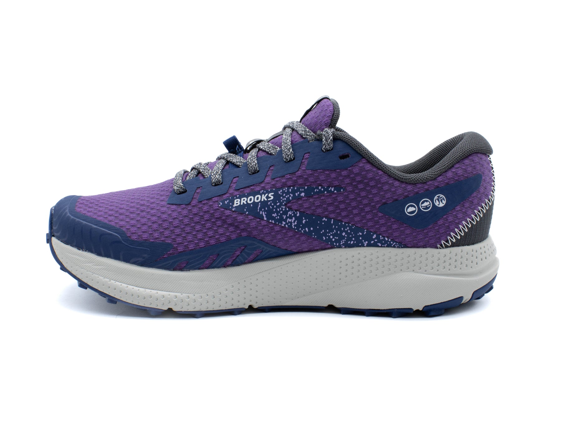 Head for the unpaved hills in this light-trail running shoe. The women's Divide 4 transitions easily from roads to trails — and back again — thanks to trail-ready traction, soft cushioning, and a breathable upper that also features a durable mudguard.