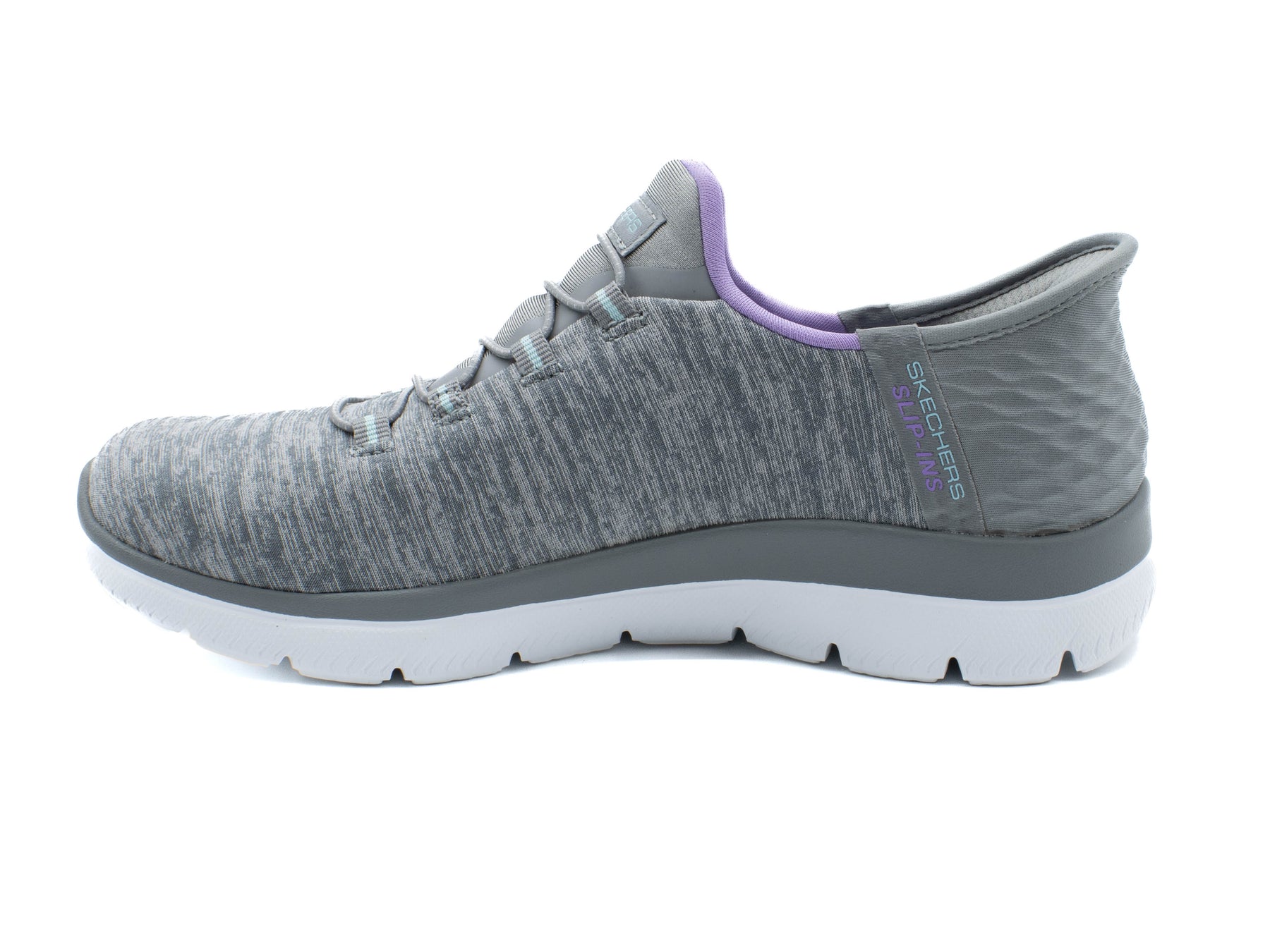 Pick up the pace with increased ease-of-wear and superior comfort wearing Skechers Slip-ins®: Summits - Dazzling Haze. Designed with our exclusive Heel Pillow™, this vegan style features a soft heathered jersey knit upper with fixed stretch laces and a cushioned Skechers Air-Cooled Memory Foam® comfort insole.