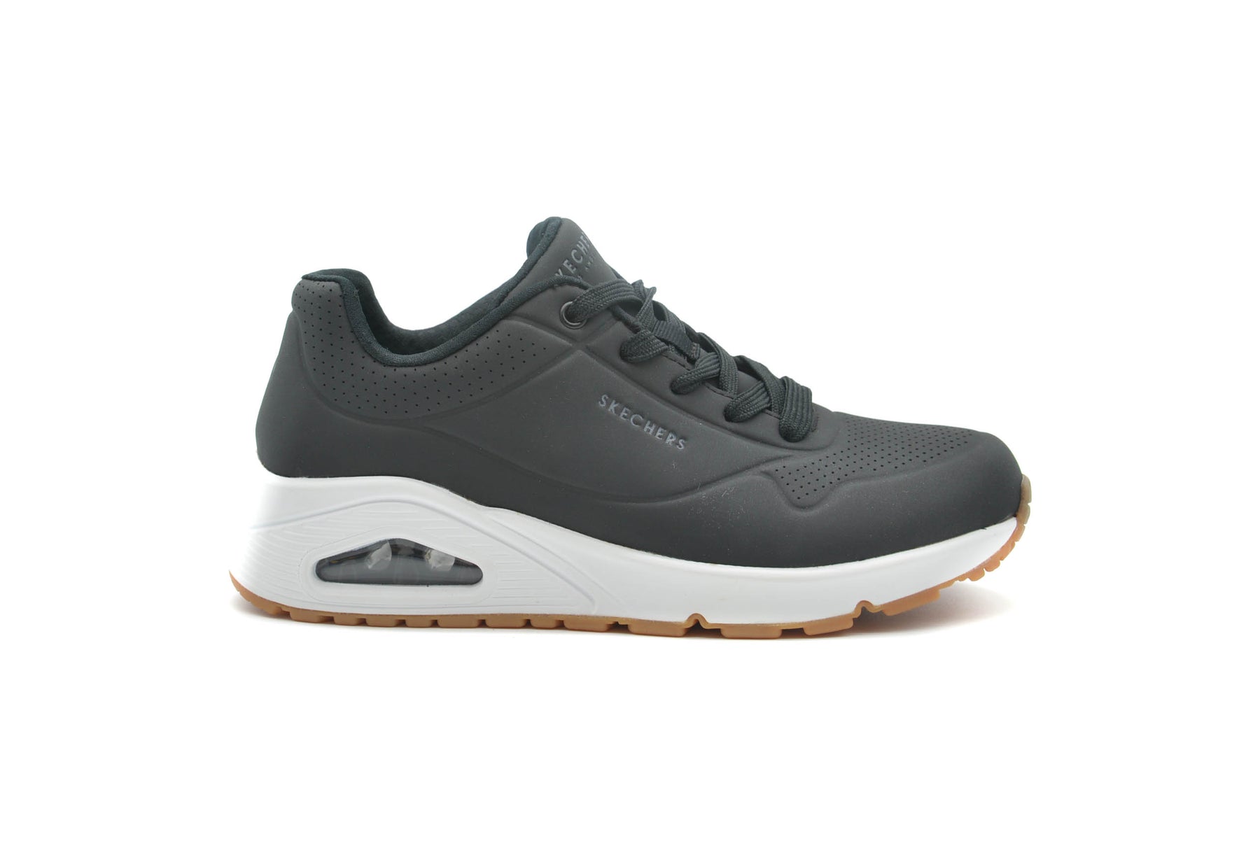 Classic air-cushioned comfort gets a fresh update in Skechers Street™ Uno - Stand on Air. This lace-up fashion style features a smooth perforated synthetic upper with an Air-Cooled Memory Foam insole, and a Skech-Air visible air-cushioned midsole.