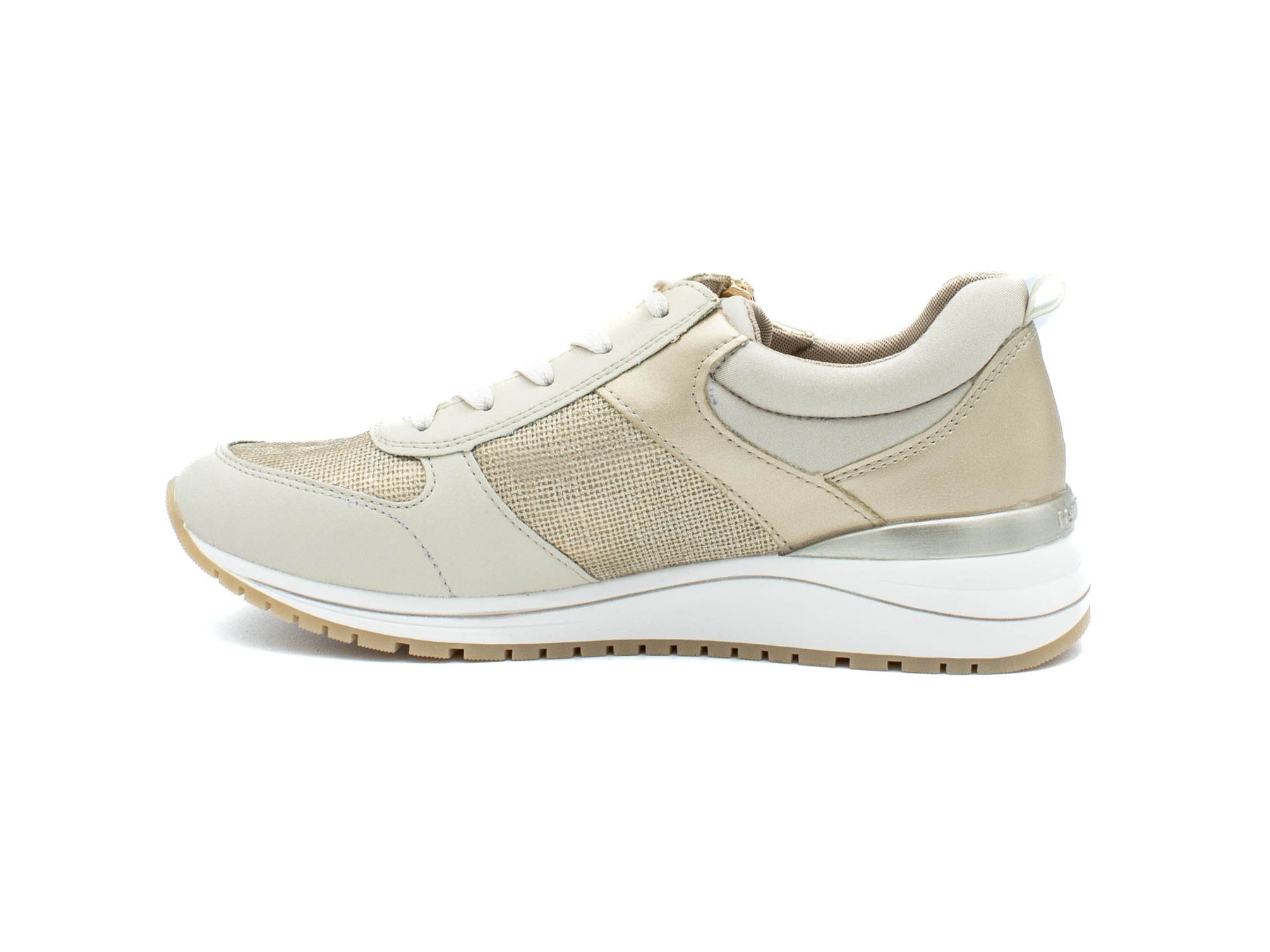 The Remonte R3702 is your go-to trainer for the new season. It is crafted with a man-made upper with metallic decorations, along with a microvelour lining for premium comfort. The chunky sole unit adds to the sporty aesthetic whilst also providing durability and traction underfoot. It is complete with lace up closure for a secure and adjustable fit, and a handy side zip for easy on and off.