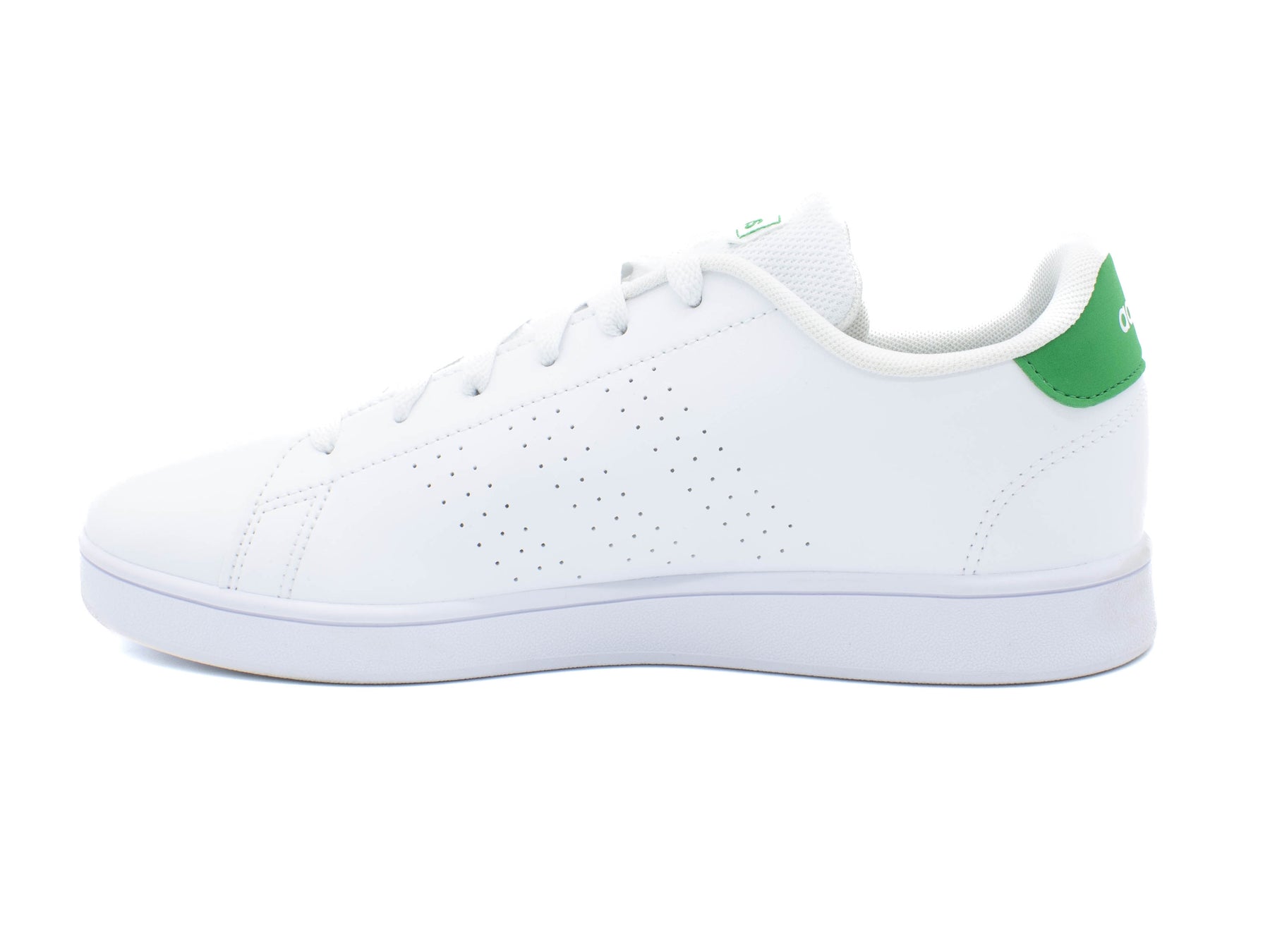 These men’s Advantage Primegreen cloud white/cloud white/green court sneakers by Adidas provide classic styling with sustainable comfort. Made of synthetic upper containing 50% recycled content, these casual sneakers have a round toe and lace-up closure. Along with perforated 3-Stripes detail at the quarter, features include a lightly padded collar, soft textile lining, Cloudfoam Comfort sockliner for superior cushioning, and a durable rubber outsole.