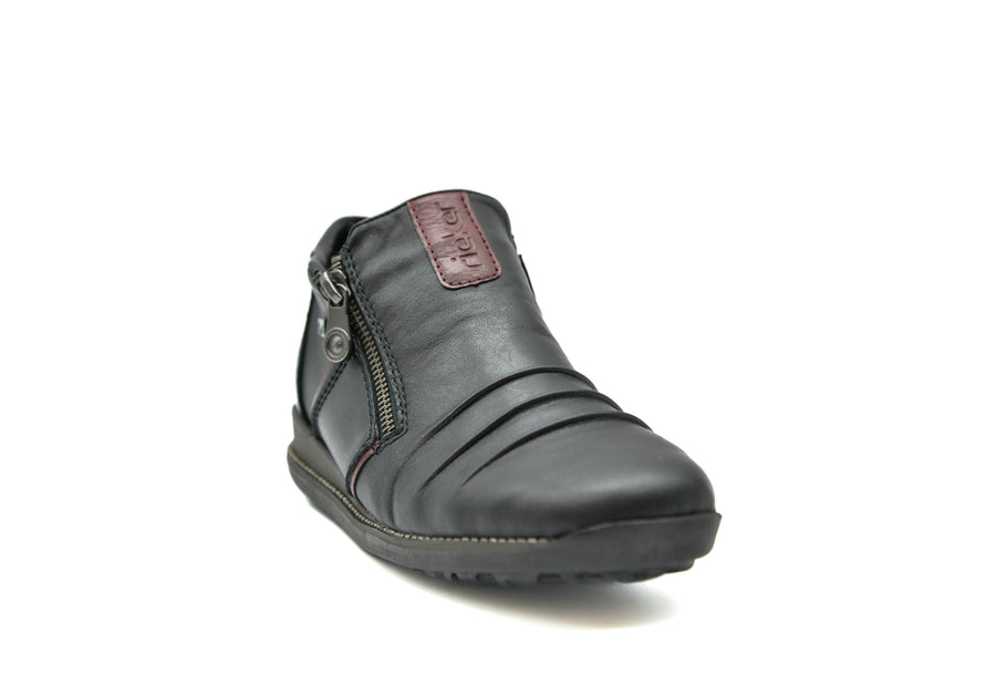 Women's ankle boots with 2 side zippers a low wedge and a good sole grip for those icy days. Lining is lambs wool to keep your toes nice and toasty warm.