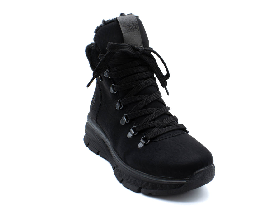 These jet black Rieker lace-up boots for women not only look super fashionable, they also protect your feet from the cold. The clever combination of lacing and zipper makes it easy to put on and take off the shoe. With the ultra light and flexible sole, your feet will enjoy best comfort at every step. The padded and removable insole is a cool feature that provides practical comfort. The extra cozy warm lining keeps the feet warm all day long and the RiekerTEX technology keeps them dry! Your best buddies for the new season!