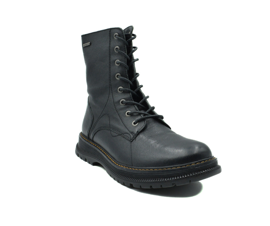 The Paloma 01 black combat boot from Josef Seibel is a boot that lends a tough talking edge with all the comfort. Constructed with a chunky lug sole with exceptional grip and shock absorbance, as well as removeable insoles. Lace up styling with an inside zipper for an easier on and off. Made with a special waterproof membrane, coupled with treated uppers that allows breathability and long-lasting waterproof protection.