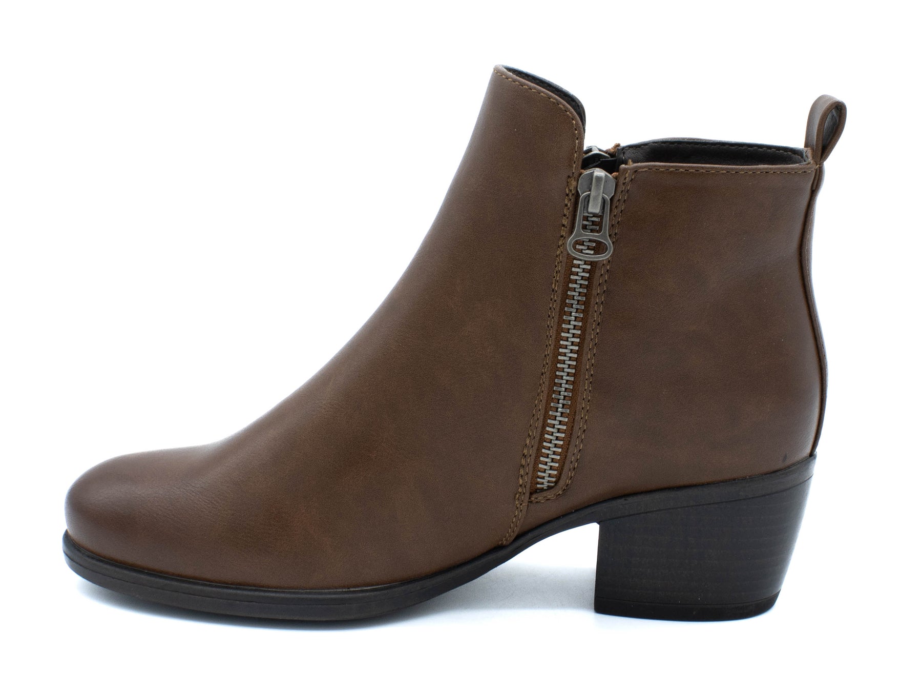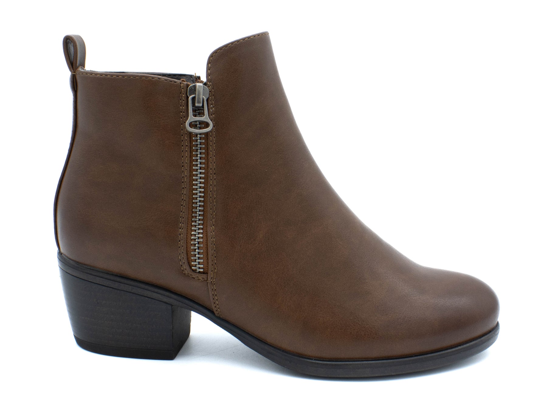Designed using a vegan leather upper these round toe boots feature side zip closure, a plush insole and a durable outsole with sturdy block heel.