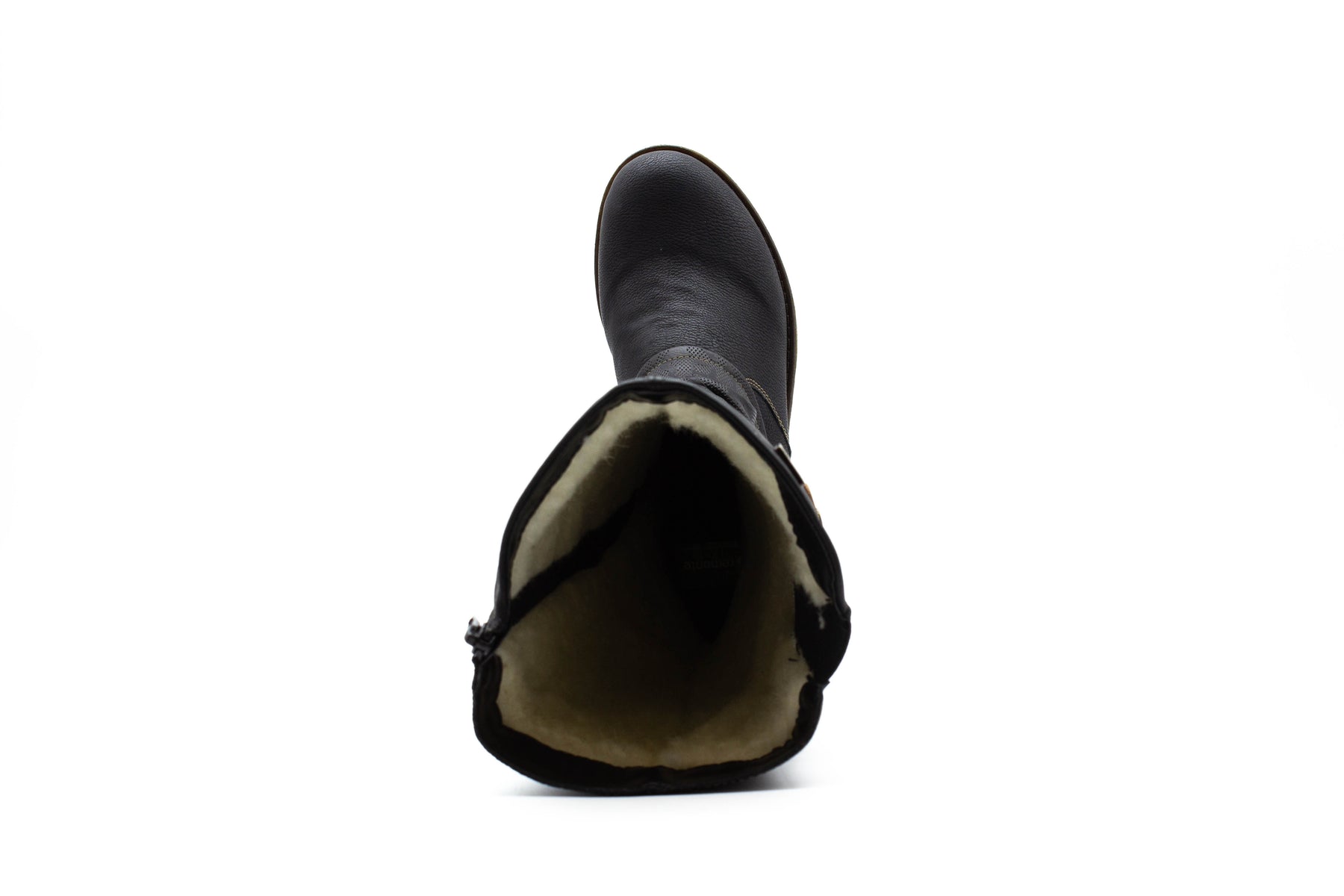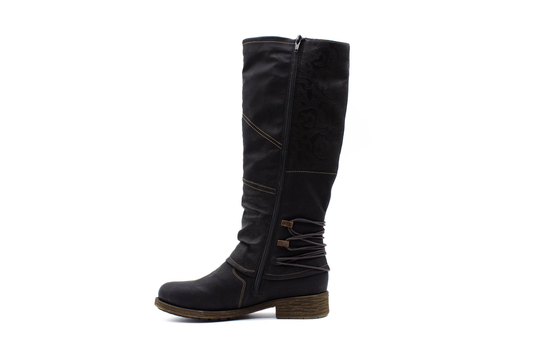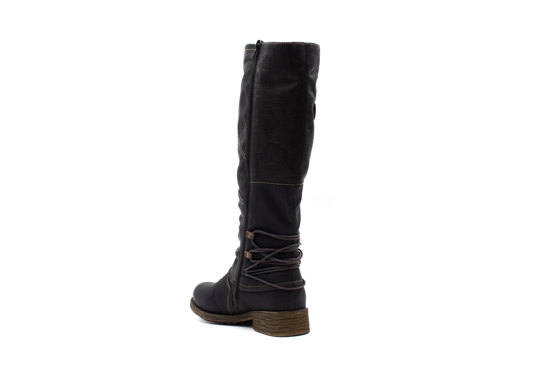 Wool lining and a rounded toe box make Remonte boots a winter favourite. A faux side buckle covers an elasticized side panel at the top of the boot. The heel is accented with (non-adjustable) laces.