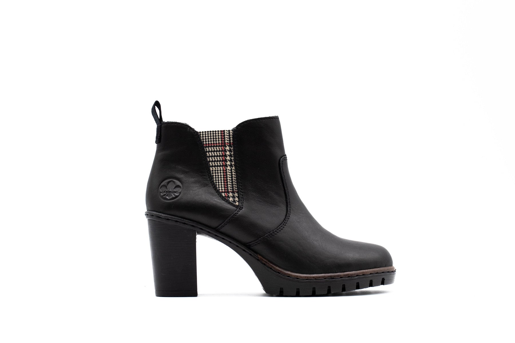 Perfect for in the office or a night out. These M2584 boots by RIEKER will have you looking and feeling your best! An elastic band with a diamond pattern is sewn on the side for easy wearing.