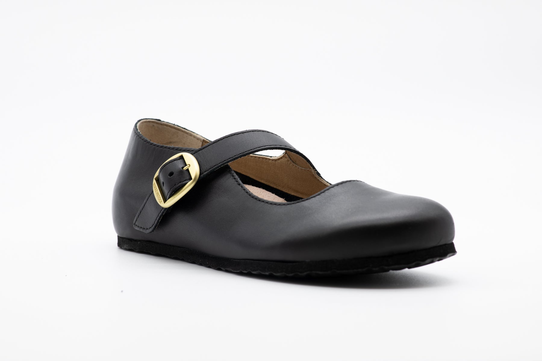 The BIRKENSTOCK Tracy is an interpretation of the popular ballet flat in a classic Mary Jane design. The shoe has a feminine look, but still offers a secure fit thanks to its narrow strap across the instep. The upper is shown in high-quality leather.