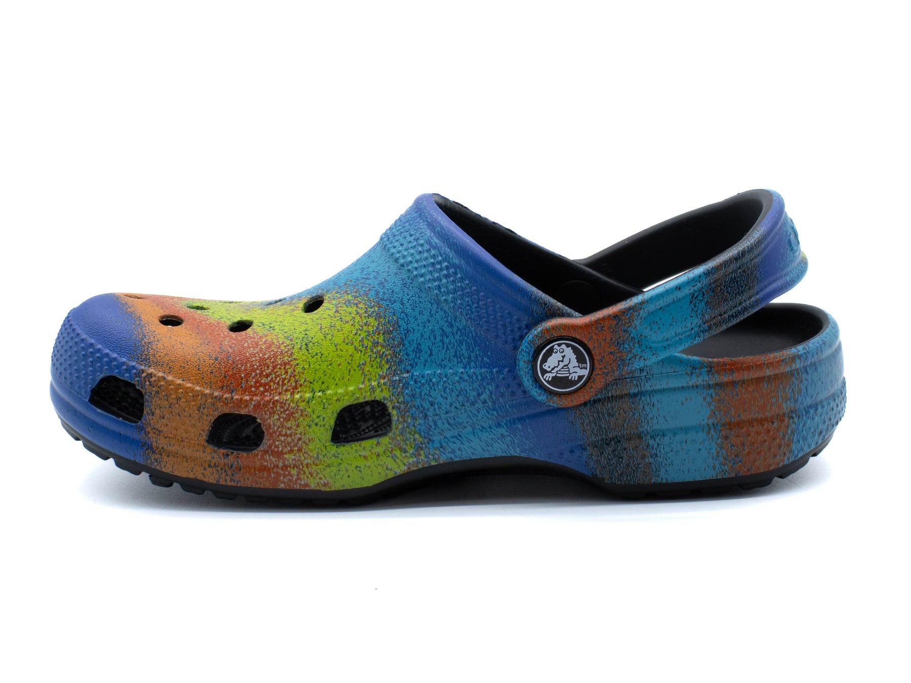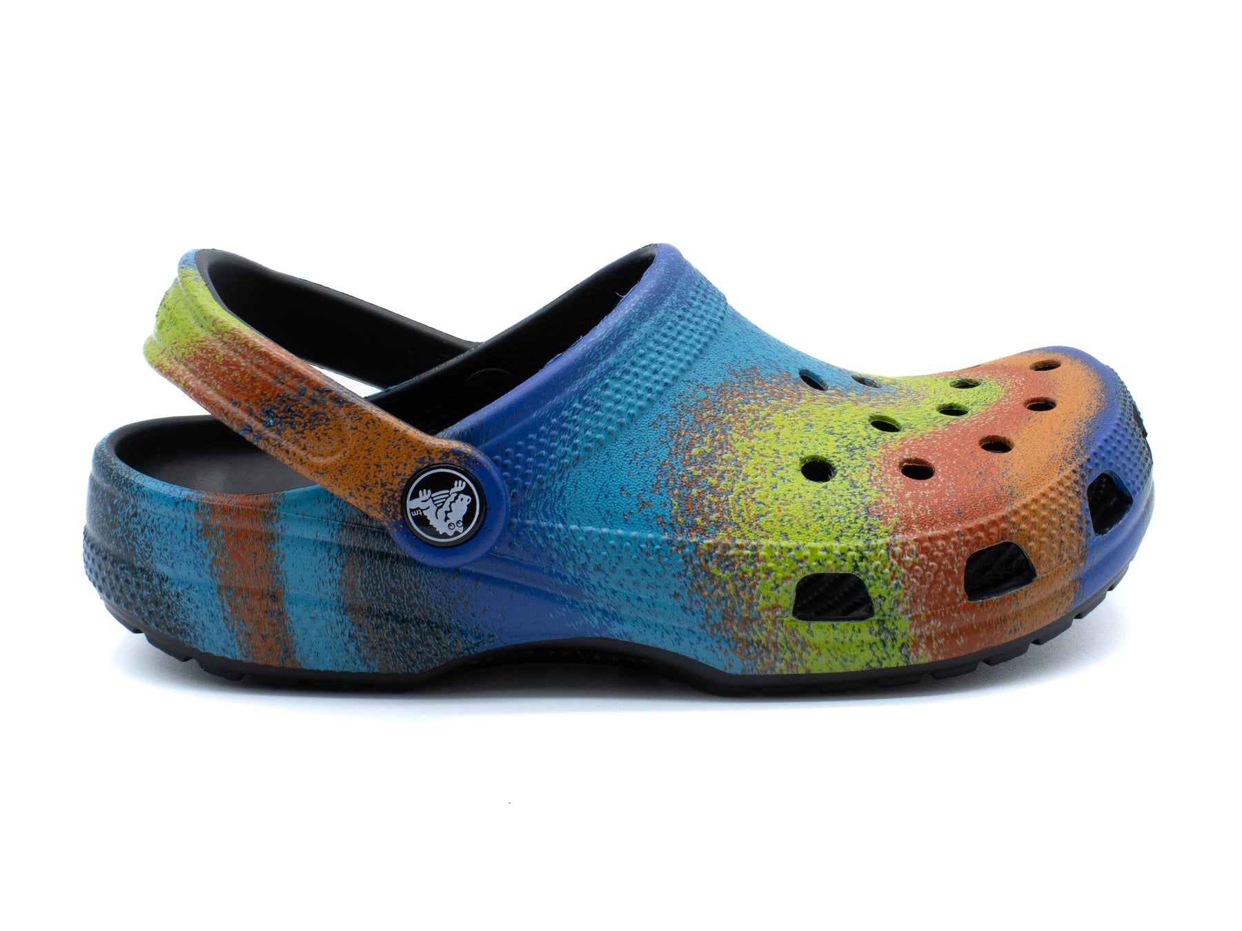 The Classic Clog from Crocs gets a new spin with this multicoloured Spray Dye, perfect for adding some extra attitude to your favourite fit. Made from a lightweight Croslite™ foam material, these Crocs are the best way to stay comfy while showing off your bold personal style.
