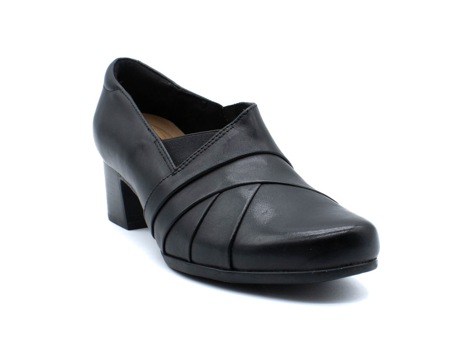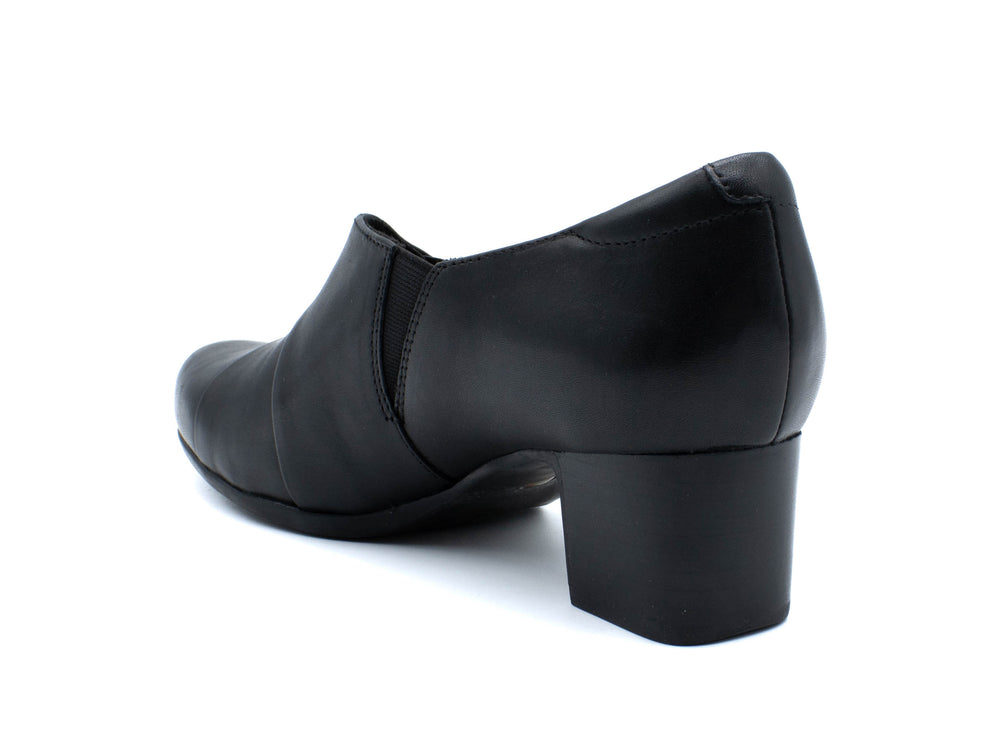 With interest detailing on the toe, these slip-on shoes with a wearable 5cm heel are a timeless addition to your work wardrobe. Crafted from black leather and with a durable rubber sole that provides traction as you walk, these shoes from our Unstructured collection have a flexible feel that ensures long-lasting comfort.