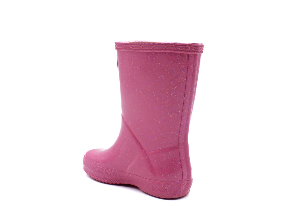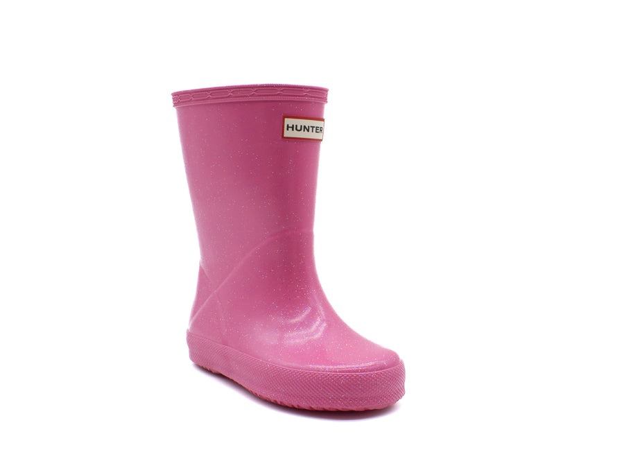 Adding a touch of sparkle to rainy days this glittery kids rain boot is handcrafted using a unique process exclusive to Hunter. Finished in a vivid blue shade with a shimmering glitter layer, the Kids First Starcloud Boot is perfect for puddle splashing. A flat sole and rounded toe gives little feet room to move and the soft cotton lining ensures complete comfort for every adventure