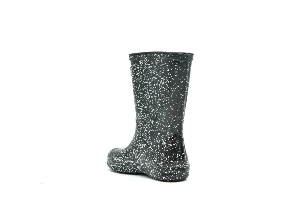 Featuring a glitter finish, this kids boot is perfect for puddle splashing. Handcrafted from natural rubber, a flat sole and rounded toe gives little feet room to move and the soft recycled polyester lining ensures complete comfort for every adventure.