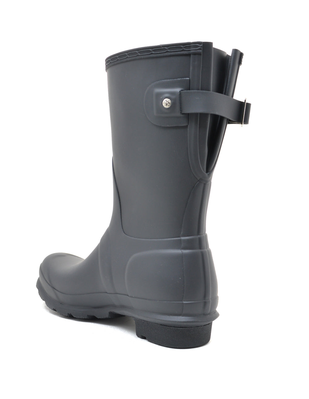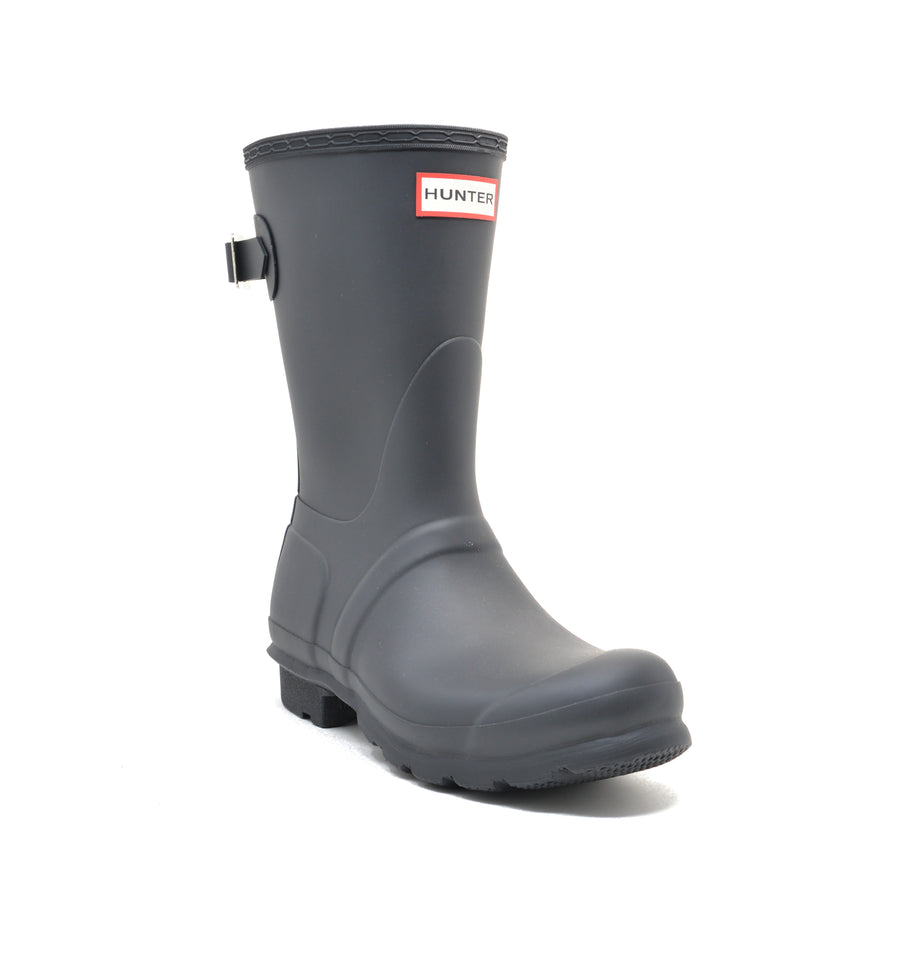Designed for a flexible fit, the Original Short Adjustable Boot mirrors the iconic Original Tall with the addition of an expandable gusset at the back and a shorter leg height. Perfect for a wider calf, these matte boots in classic black offer ease of movement and adjust from the traditional tailored Hunter fit to a more relaxed shape when the gusset is fully extended. Handcrafted from natural rubber, this Original adjustable short boot is fully waterproof with a comfortable polyester lining and the signature Hunter Original tread. We recommend that all Hunter boots be worn with socks to protect the wearer's skin from contact with rubber.