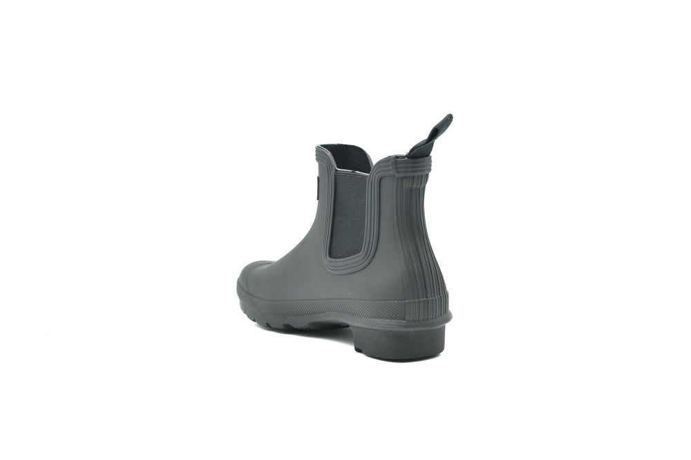 The new and improved Hunter Original Chelsea Boot has an even more optimum fit to maximise all-day comfort. Ready for rain, each boot is handcrafted from natural rubber and vulcanized for superior protection. Retaining the iconic features of a traditional Chelsea, it features elasticated-gussets and has a nylon pull-tab to make stepping into the boot easy. In a classic black matte, these waterproof Chelsea's are a wet weather wardrobe essential. We recommend that all Hunter Chelsea boots be worn with Hunter Chelsea socks, which have been technically designed to protect the wearer's skin from contact with rubber in specific areas.