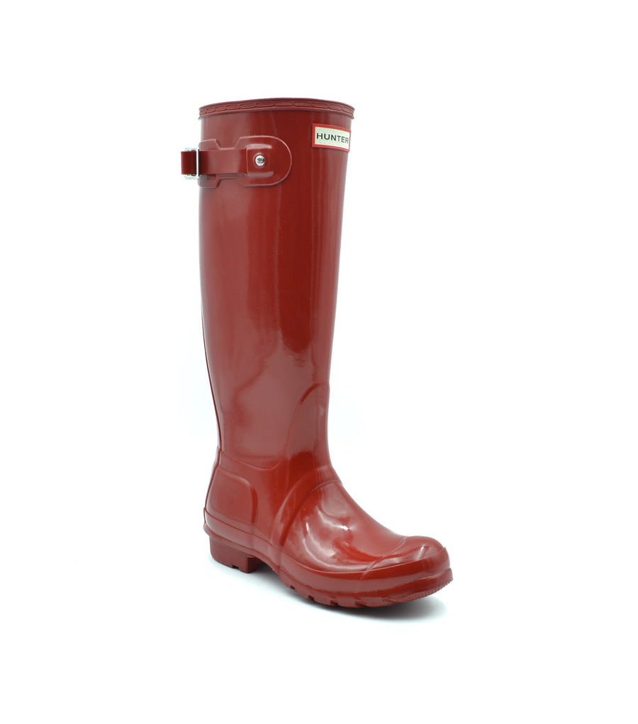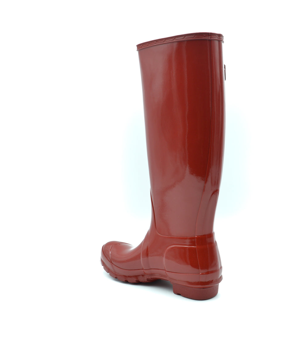Perfect for wet weather conditions, this women's Rain Boot Boot has been at the heart of the Hunter Original brand since its introduction in 1956. Formed of natural rubber, each pair is made from 28 hand-cut parts and assembled over three days on an aluminium last bespoke to Hunter, before being vulcanized for superior protection. Featuring the Hunter Original tread pattern, and a comfortable polyester lining, this classic glossy red waterproof boot is a rainy-day necessity.