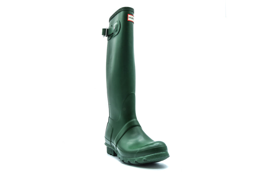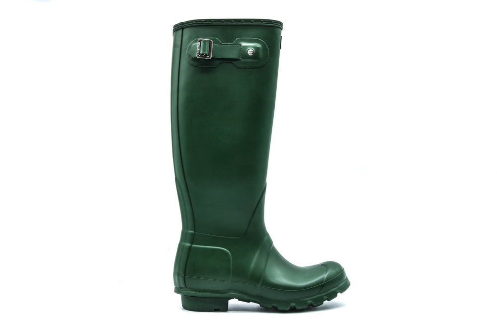 Featuring the Hunter Original Tall rain boot from Hunter. Featuring a tread pattern outsole, and a comfortable polyester lining, this classic waterproof boot is perfect for wet weather conditions. Cushioned footbed with multi-layered sponge insole. Recommend that all Hunter boots be worn with socks to protect the wearer's skin from contact with rubber.