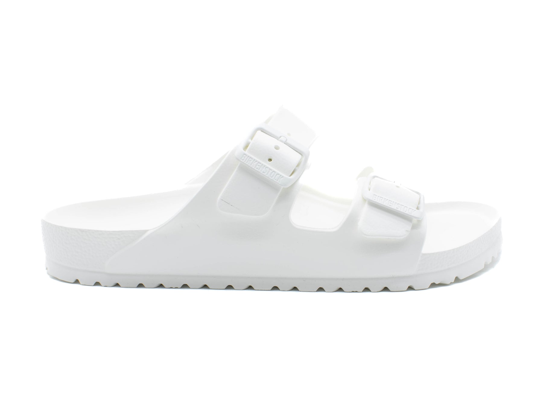 These Birkenstock Arizona sandals are the perfect companion whether you're by the beach or relaxing poolside. They're built using one-piece EVA and coloured entirely in white, then finished with a cushioning footbed that moulds to the shape of your feet. EVA Uppers, Adjustable Straps, Contoured EVA Footbed, Made in Germany. Birkenstock Arizona in Triple White EVA.
