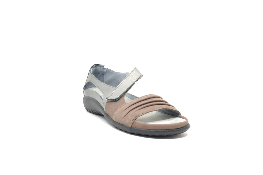 The Papaki is a fashionable sandal with a padded front strap & a contrasting ruched design. This style has a padded heel cup and a hook and loop closure at the instep. Naot's removable, anatomic cork & latex footbed is wrapped in pampering suede and molds to the shape of the foot with wear. The Koru Collection features a 1" polyurethane sole which is extremely lightweight, durable & slip resistant. This collection uses a hand-sewn stroble construction making it strong and extremely flexible.