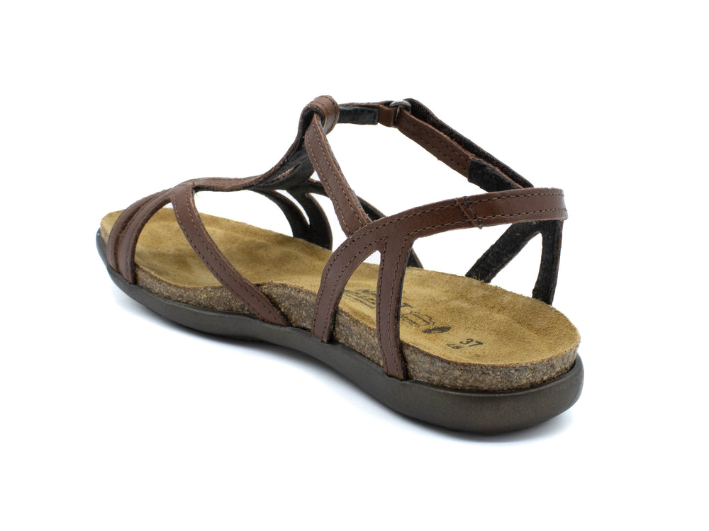 The Dorith is gladiator inspired sandal with a hook & loop strap and backstrap for added stability and support. The Dorith has a feminine design at the front. Naot's anatomic cork & latex footbed is wrapped in a pampering suede and molds to the shape of the foot with wear. The Flat Elegant Collection features a .75" TPR sole.