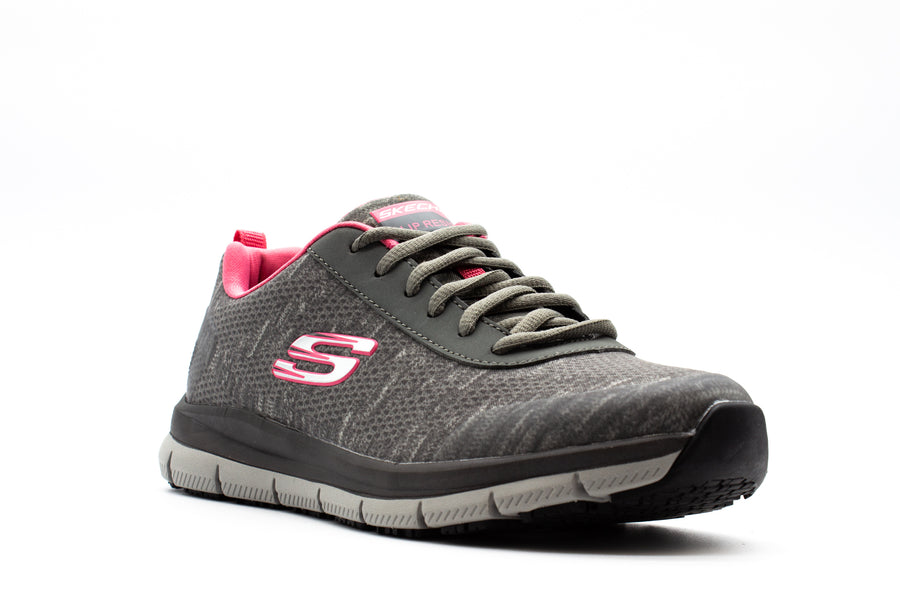 All the comfort, protection and versatile style needed by Healthcare Professionals come in the SKECHERS Work Relaxed Fit®: Comfort Flex SR - HC Pro SR shoe. Stain and water resistant smooth fabric and synthetic upper in a lace up sporty casual work slip resistant sneaker with Air-Cooled Memory Foam insole and cushioned flexible midsole.