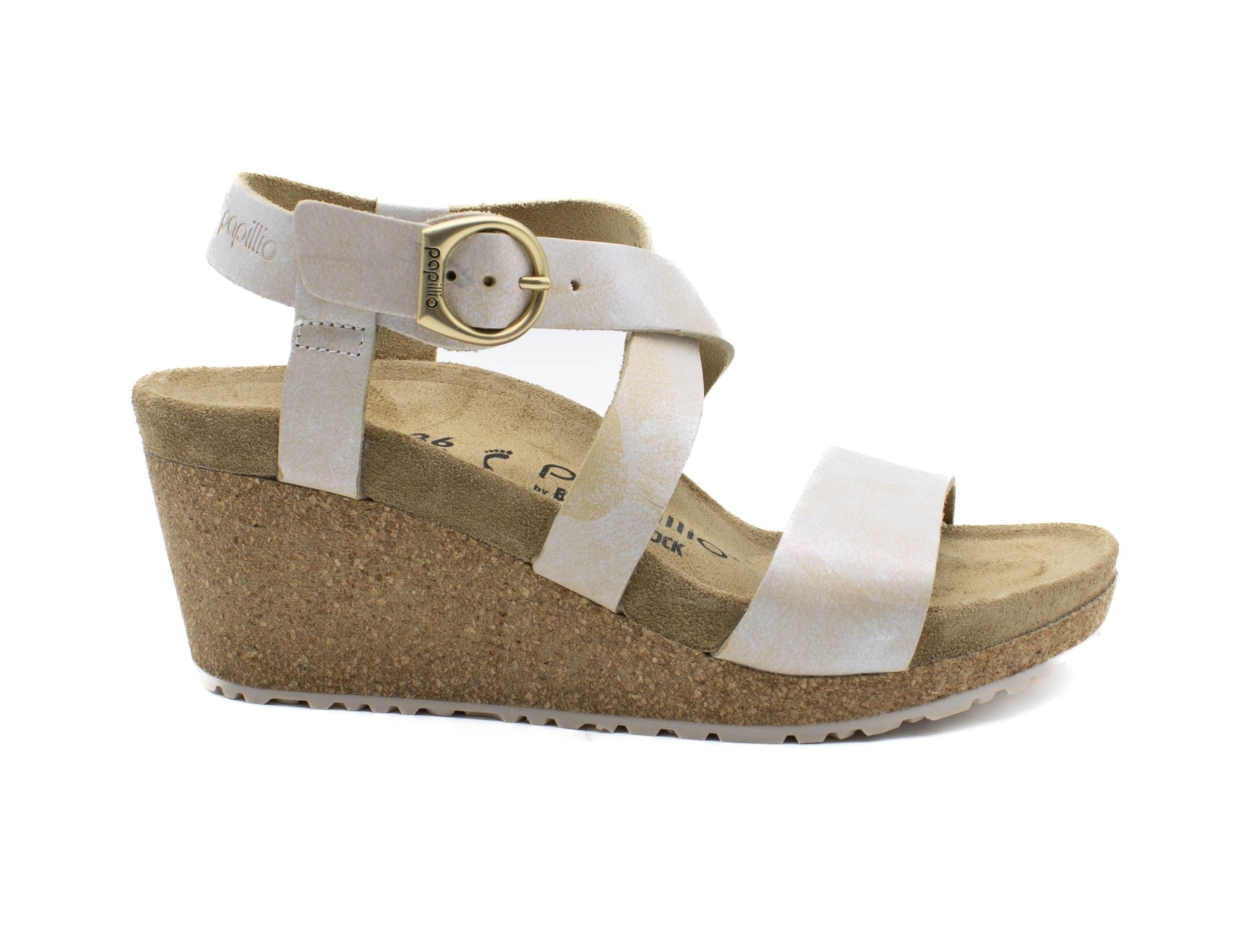The Soley is a classic wedge heel sandal from Birkenstock. The Soley is the perfect combination of style and comfort, with its simple design and sleek heel strap. The delicate circular buckles are an elegant eye-catcher to dress up any outfit. The upper is made from high-quality, soft natural leather.