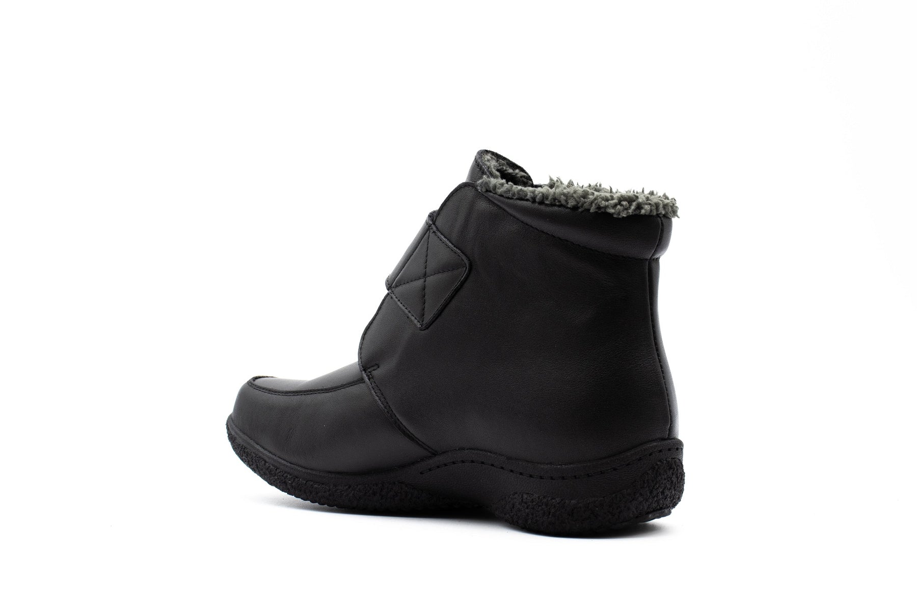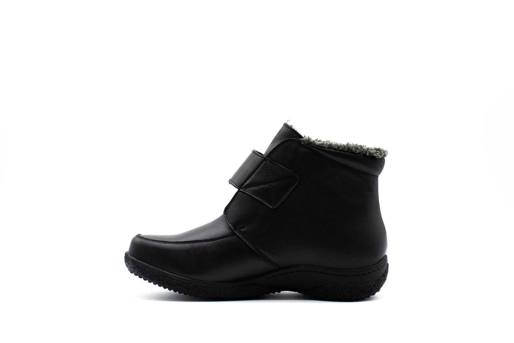 The Propet “Holly” Ladies Winter Boot in Black. Simple with a practical comfort style, perfect for keeping your feet dry and warm for work or play. Fully grain Scotchgard®-treated leather, lined with soft pile lining for a supple touch, Vaporex® heat-retaining insole system for extra insulation and cushion. Boasting a double depth food bed for flexible orthotic adoption. Style finished with an adjustable hook and loop strap closure for easy access. Scotchgard®-treated full grain leather upper with adjustable hook and loop strap closure. Soft pile lining adds warmth and comfort.