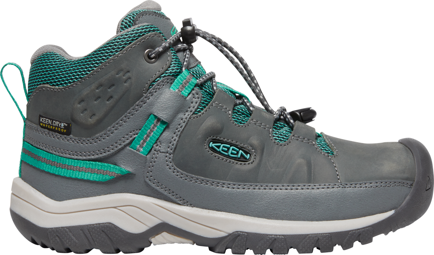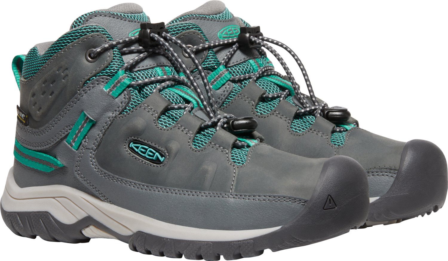 The KEEN Kids Targhee waterproof hiking boots in big kids sizes offer mid-height ankle support, performance and traction for leading the way on family hikes and camping trips. Tough and gritty on the trail.