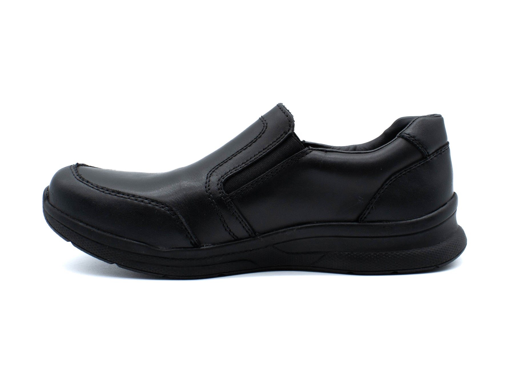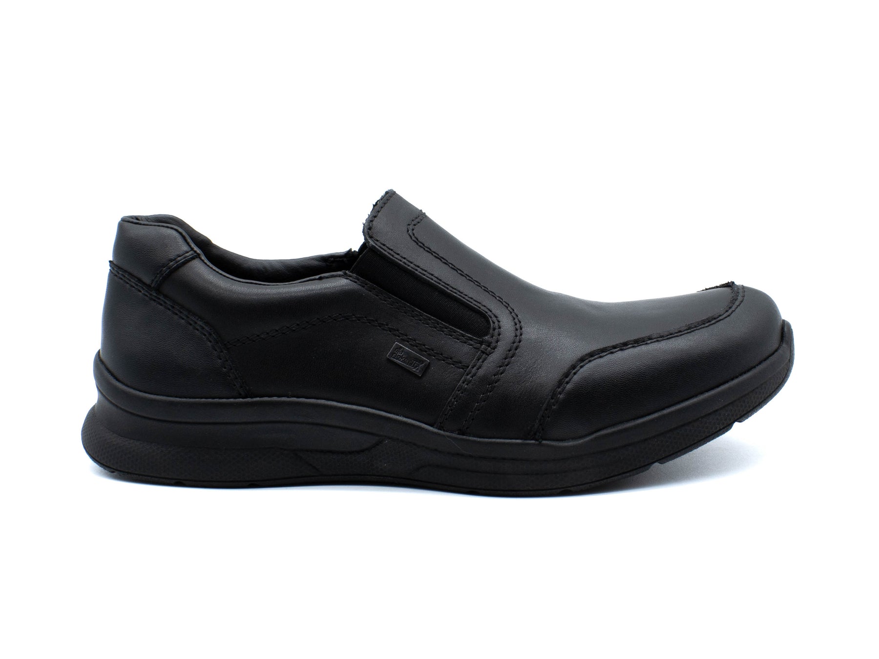 Cool, casual and up to date! These casual glossy black slippers made of smooth leather by Rieker are cozy companions on all your paths. The elastic insert makes it especially easy to put on and take off the shoe. The light and shock-absorbing sole additionally pampers the feet with every step. The removable insole is a cool feature that provides practical comfort. The extra width H gives you more space in the shoe. Thanks to the RiekerTEX technology, the shoe is water-repellent and offers protection from the wind. Just slip in and go!