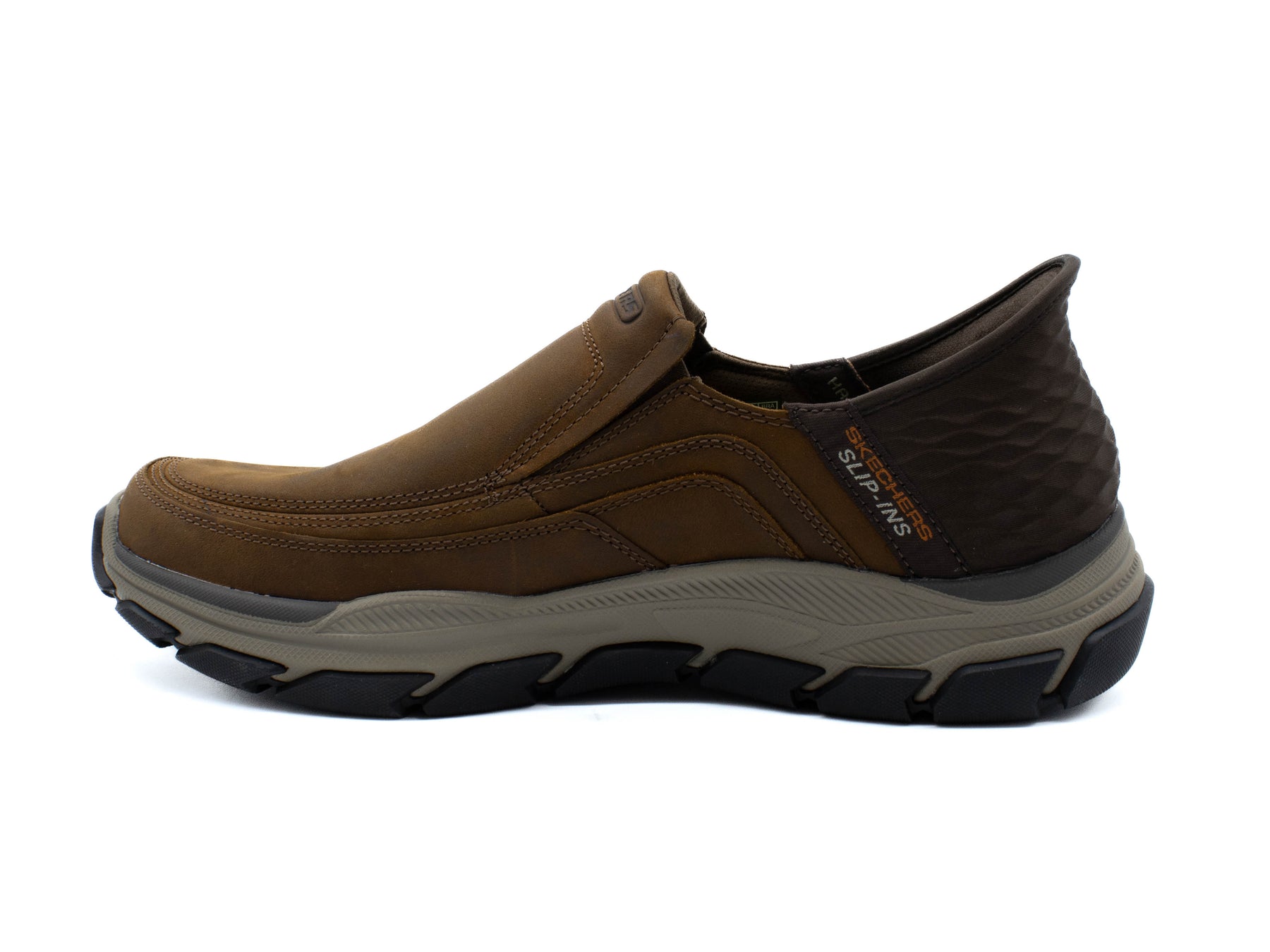 Simply step in and go wearing Skechers Hands Free Slip-ins® Relaxed Fit®: Respected - Elgin. Designed with our exclusive Heel Pillow™, this roomy moc toe style features a leather upper with a TOUCHLESS FIT® Skechers Slip-ins® molded heel panel, a comfort arch insole, and Goodyear® Rubber Outsole.