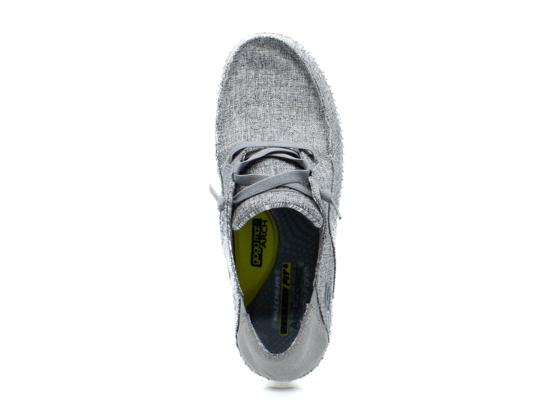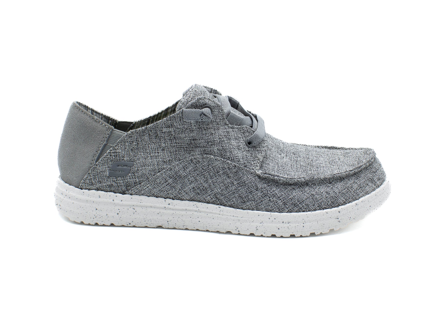 Great comfort pairs well with laid-back style in Skechers Relaxed Fit®: Melson - Chad. This Relaxed Fit® slip-on features a canvas upper in a knotted lace-up accent and a cushioned Skechers Air-Cooled Memory Foam® insole.