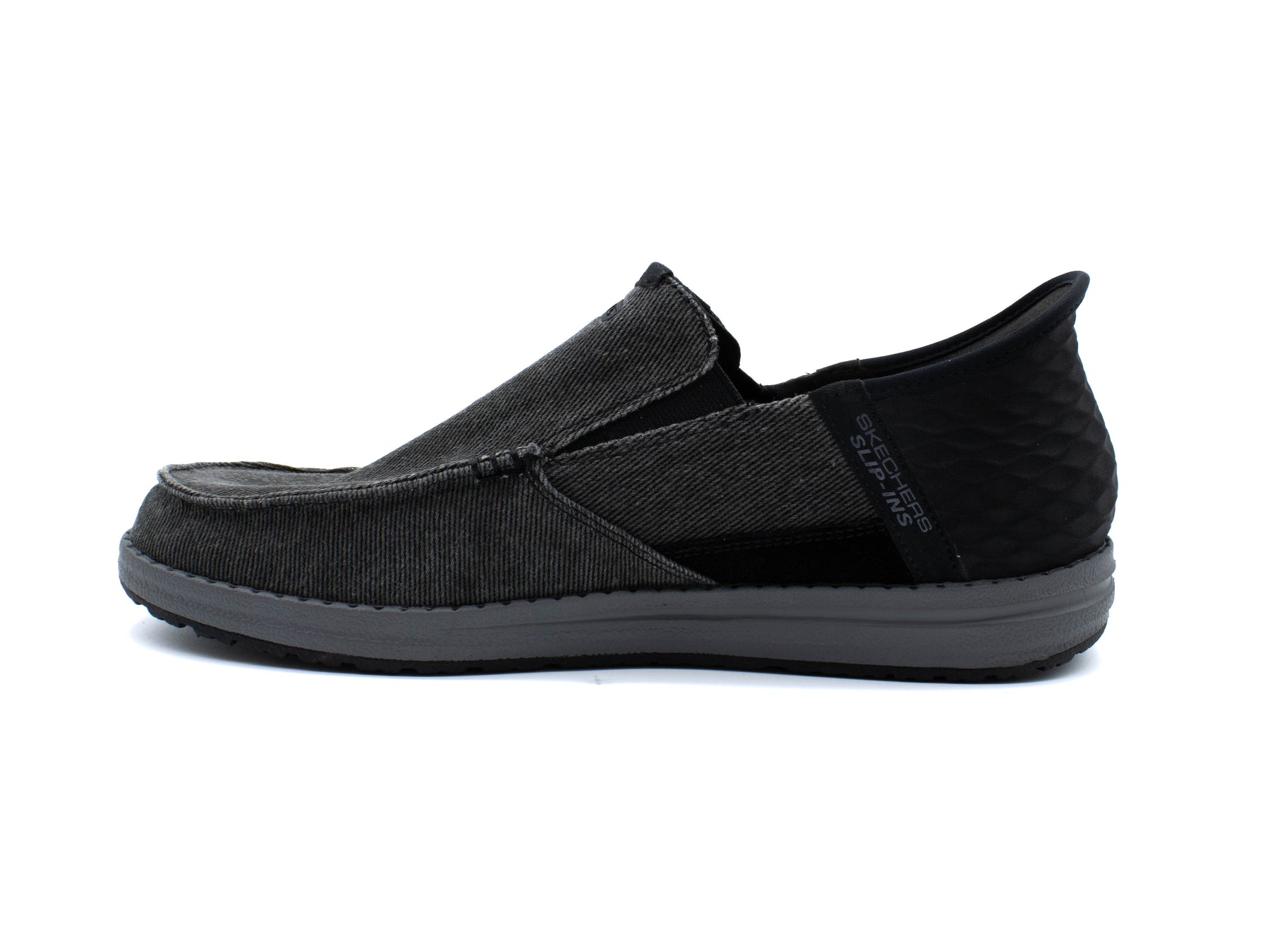 Simply step in and go wearing Skechers Hands Free Slip-ins® Relaxed Fit®: Melson - Colwin. Designed with our exclusive Heel Pillow™, this moc toe slip-on features a canvas upper with a charcoal-infused Skechers Air-Cooled Memory Foam® comfort insole and Goga Mat Arch™ cushioning for added support.