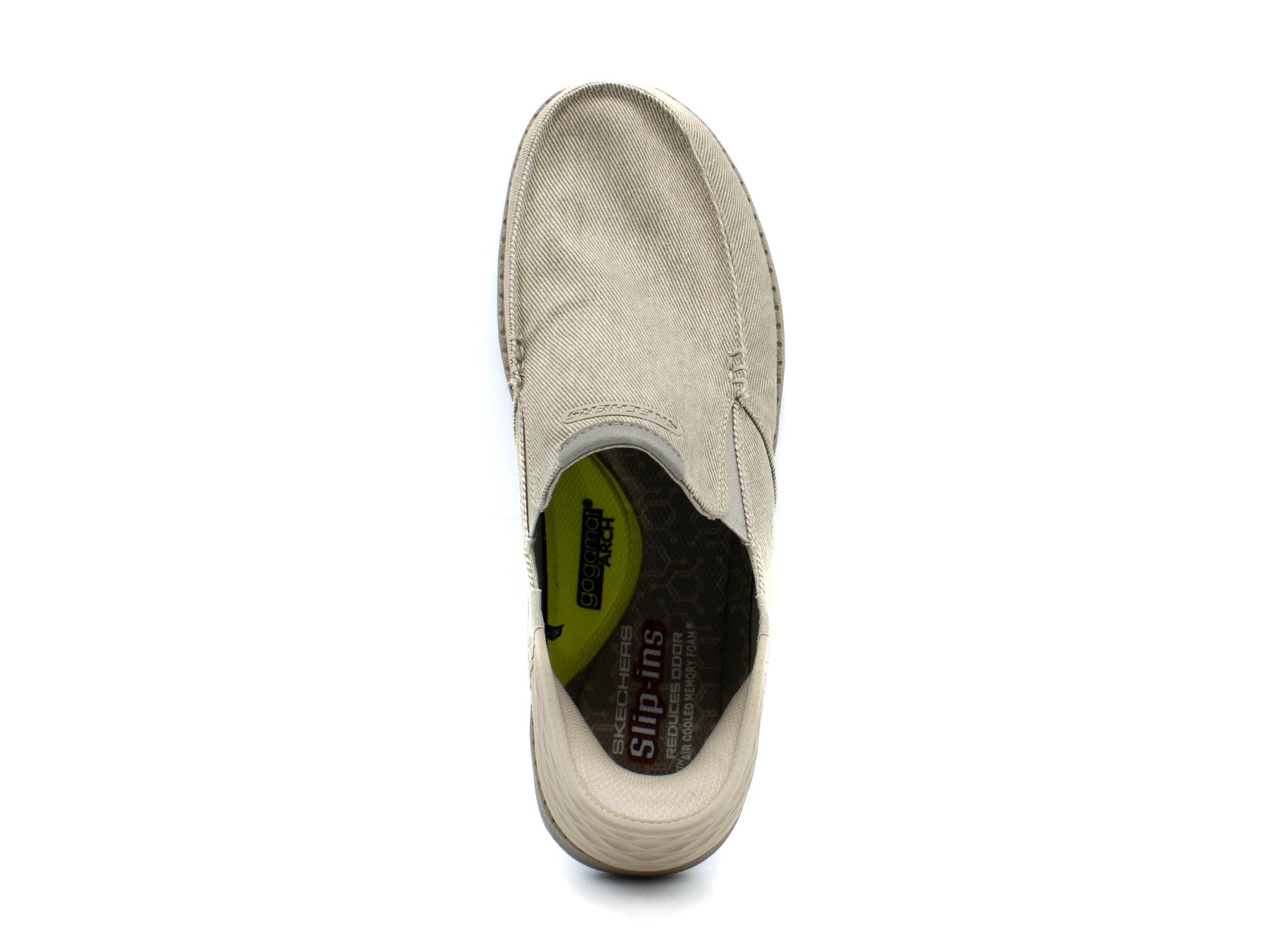 Simply step in and go wearing Skechers Hands Free Slip-ins® Relaxed Fit®: Melson - Colwin. Designed with our exclusive Heel Pillow™, this moc toe slip-on features a canvas upper with a charcoal-infused Skechers Air-Cooled Memory Foam® comfort insole and Goga Mat Arch™ cushioning for added support.