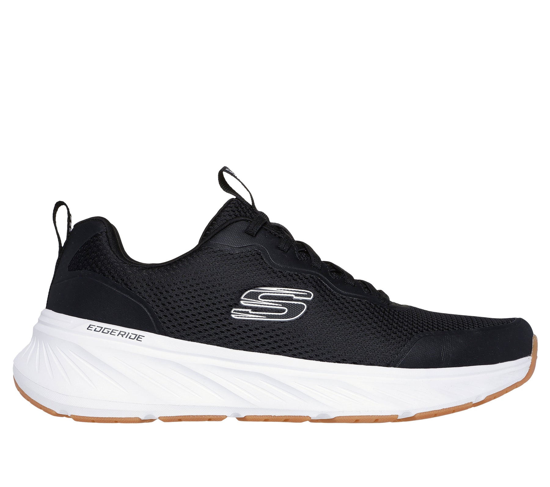 Enjoy well-cushioned performance while minding your footprint wearing Skechers Edgeride - Rekze. This product's upper is made with at least 20% recycled content by weight, which helps to reduce waste, this vegan athletic style features a mesh and synthetic overlay upper with stretch laces, a well-cushioned midsole, and a Skechers Air-Cooled Memory Foam® insole. Our Planet Matters®: Good for your feet. Good for the world.®