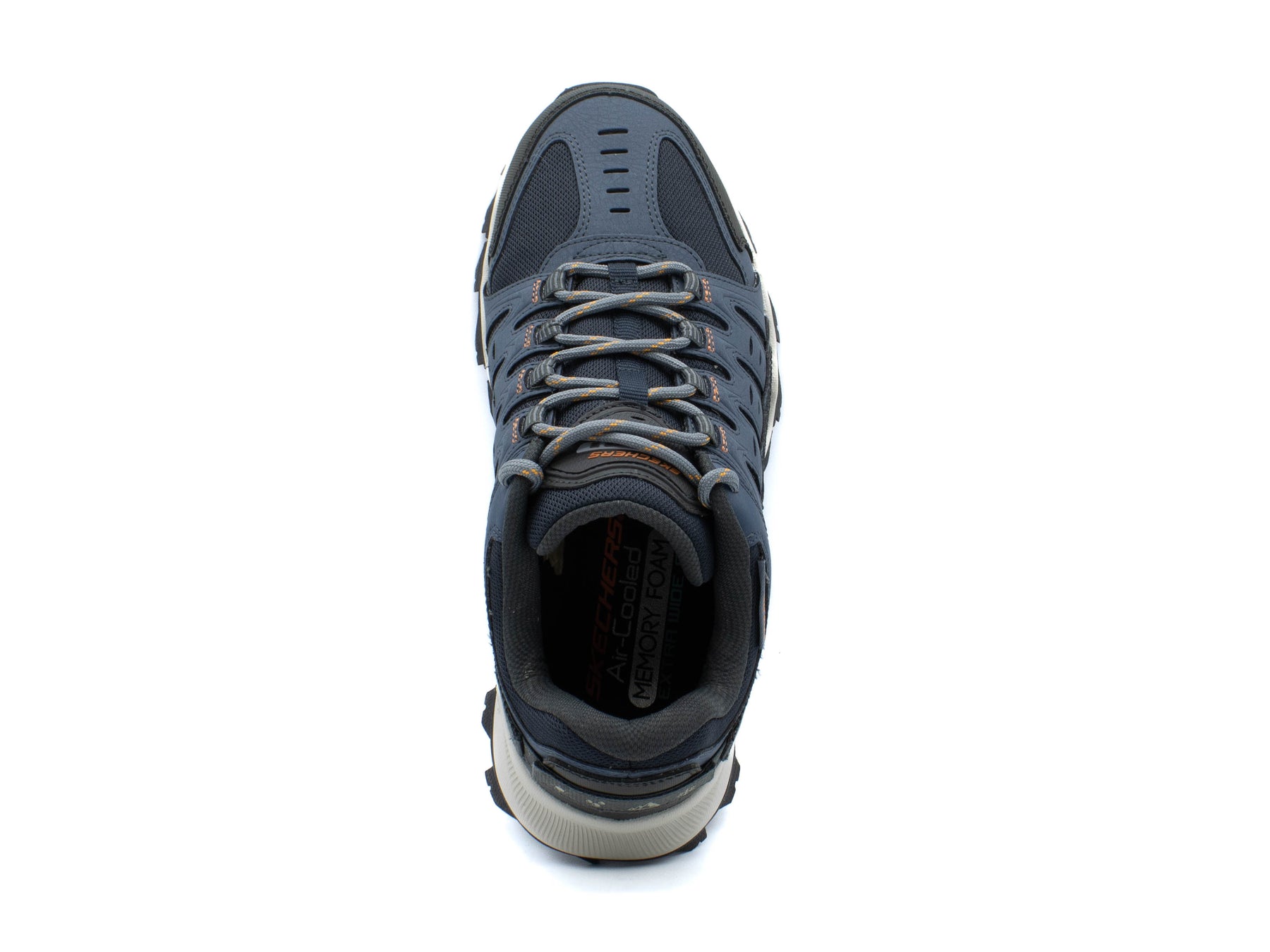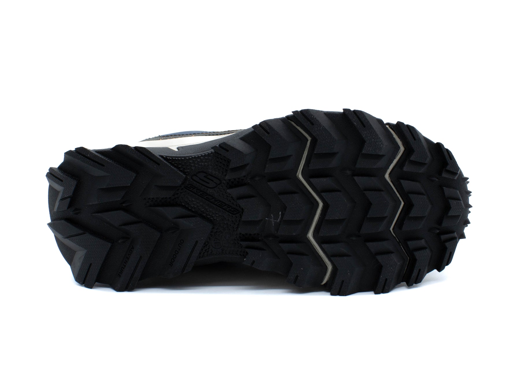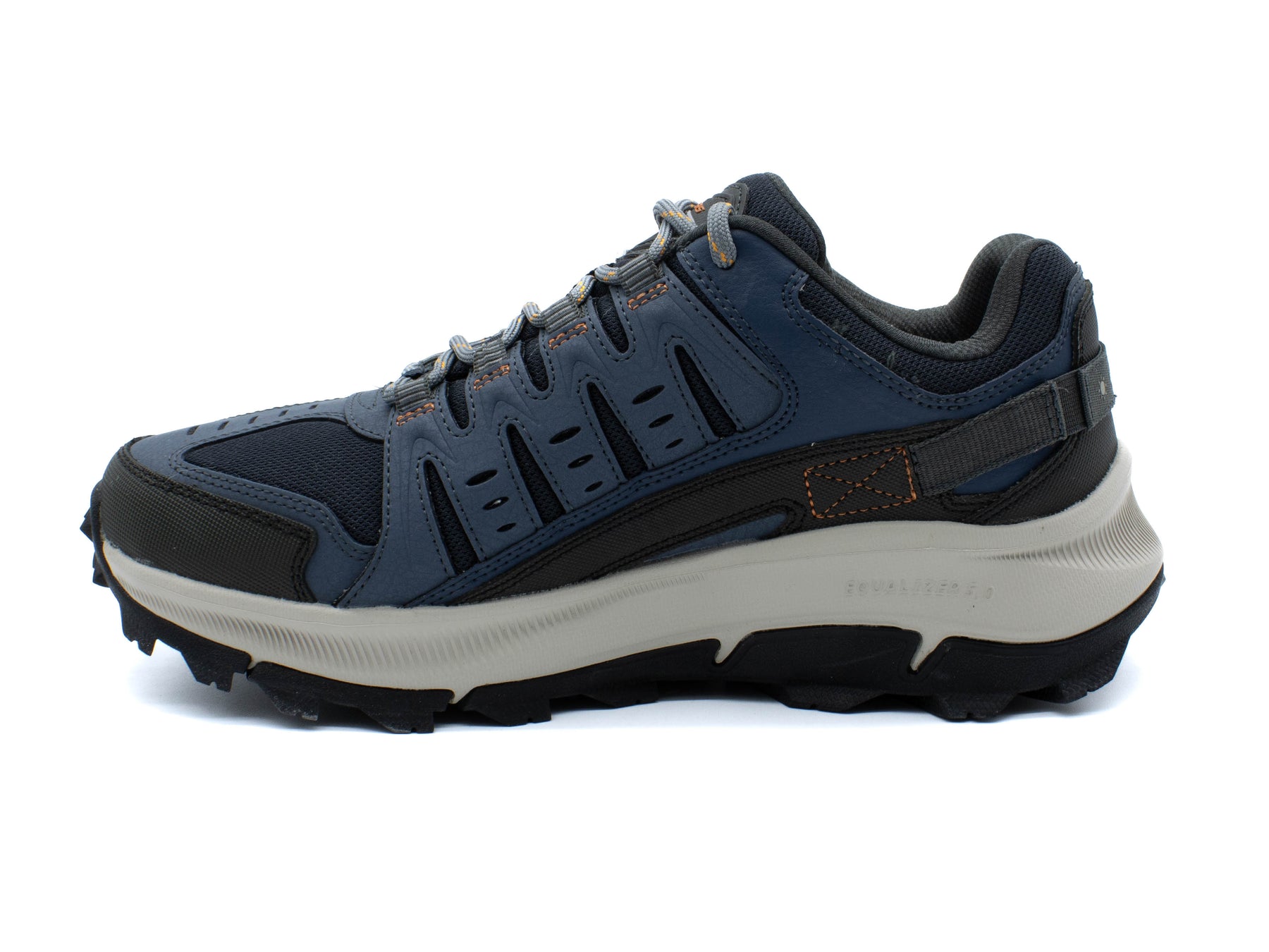 Find comfort in the great outdoors wearing Skechers Relaxed Fit®: Equalizer 5.0 Trail - Solix. This lace-up water-repellent trail design features a durable textile and leather upper with a high-traction all-terrain outsole and a Skechers Air-Cooled Memory Foam® cushioned comfort insole.