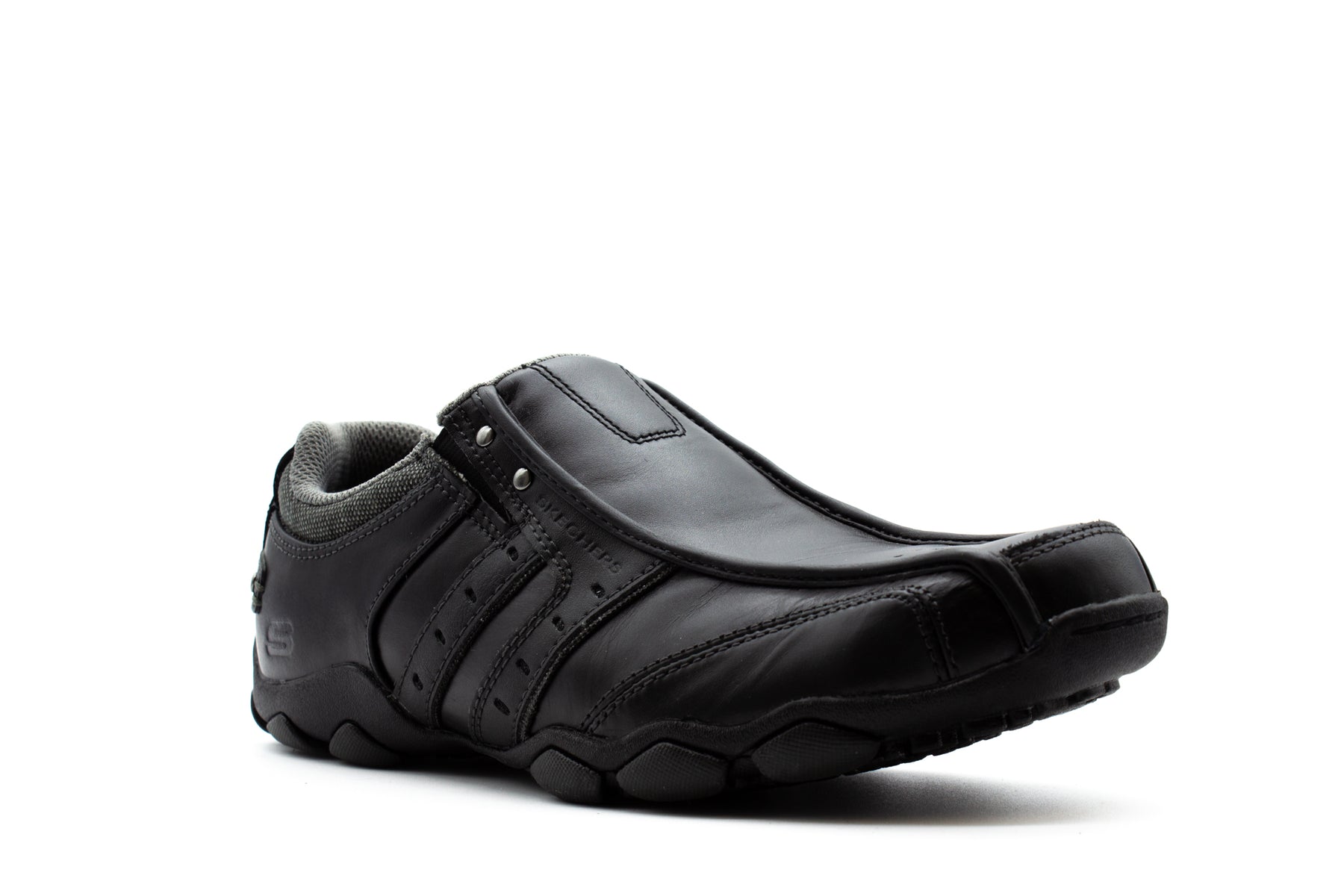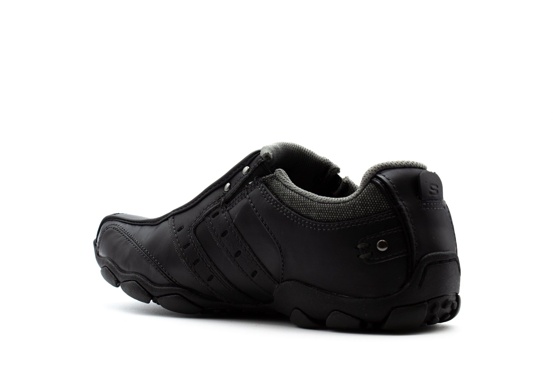 Take home the trophy for cool casual style in the SKECHERS Diameter-Heisman shoe. Smooth leather or oiled smooth leather upper in a sport casual slip on with stitching, overlay and perforation accents. Metal stud detail.