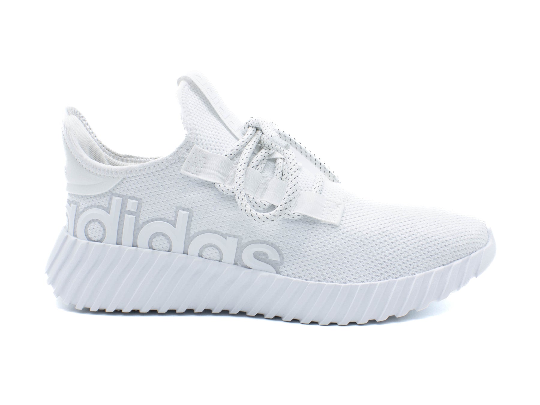 You don't do anything ordinary. Define your style with bold originality in these adidas shoes. The sleek silhouette brings a futuristic look, and they're built with the comfort to match your daily moves. The Cloudfoam midsole gives ultra-soft cushioning so you feel light while looking fresh. Large graphic text makes them undeniably adidas. Made with a series of recycled materials, this upper features at least 50% recycled content. This product represents just one of our solutions to help end plastic waste.