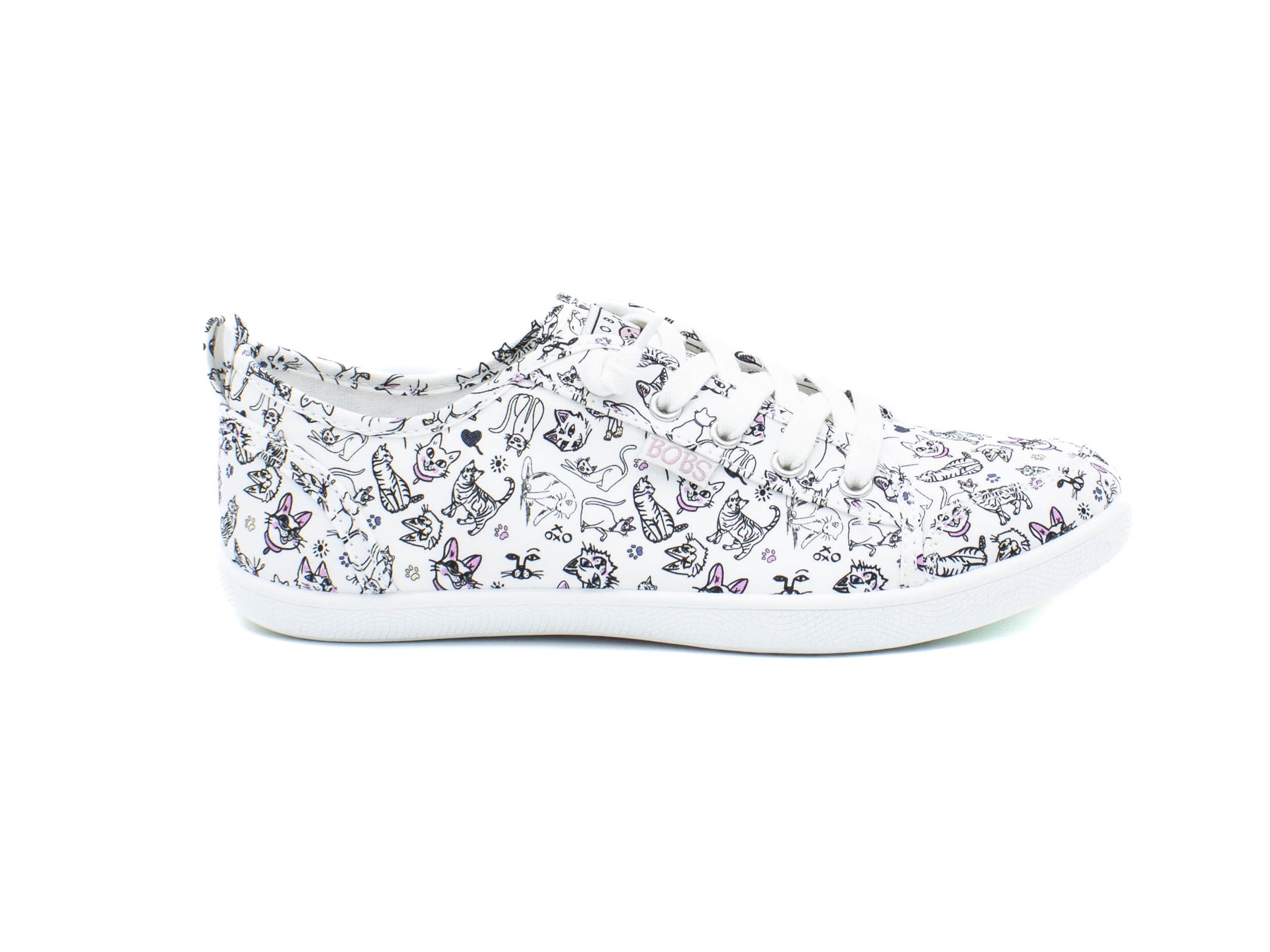 Purrfect style and comfort combine in BOBS from Skechers™ BOBS B Cute - Kitten Cues. This casual vegan design features a "Pretty Kitty" print canvas upper and a cushioned Skechers Memory Foam™ comfort insole.
