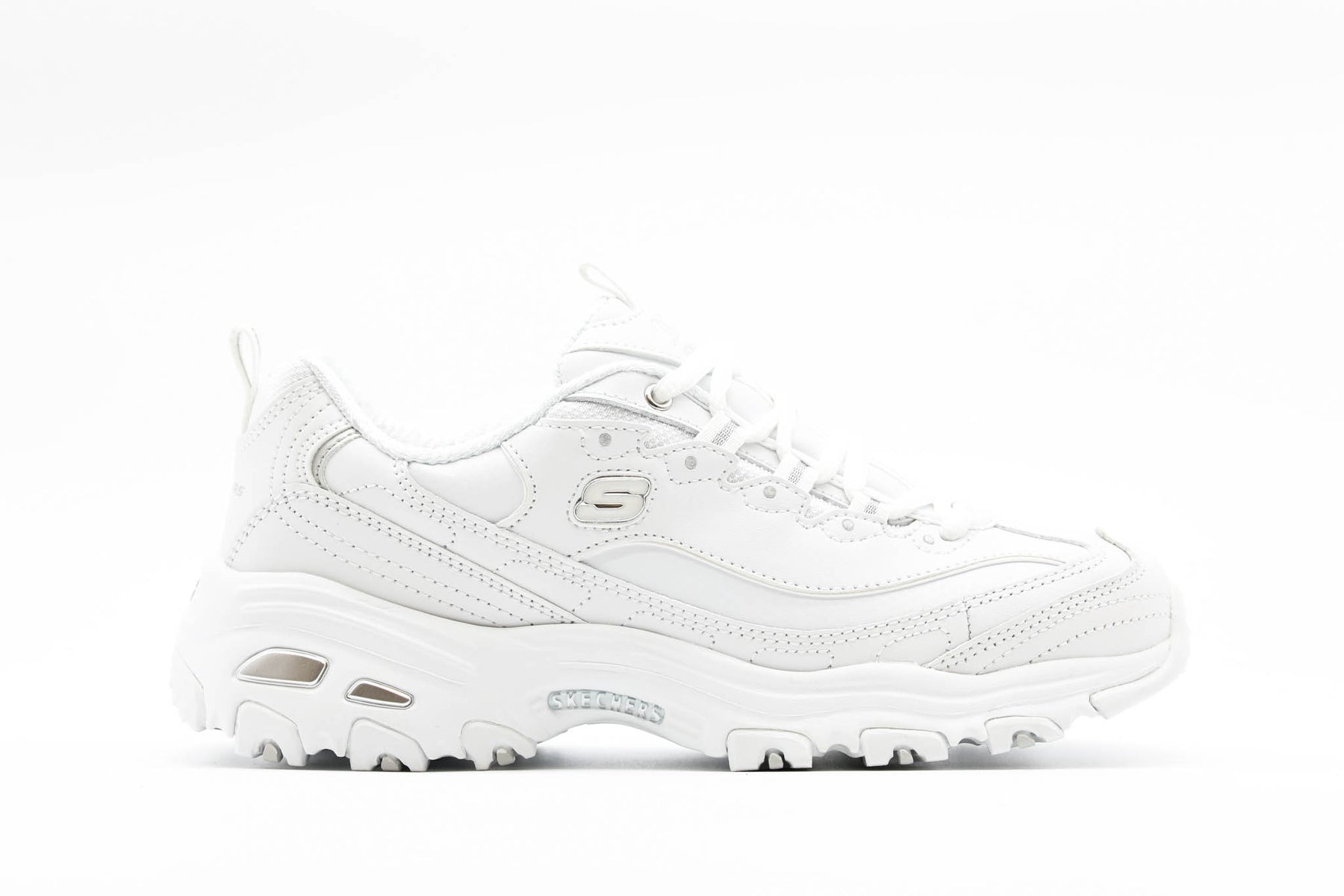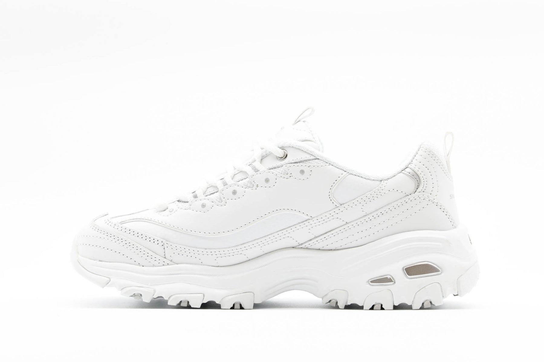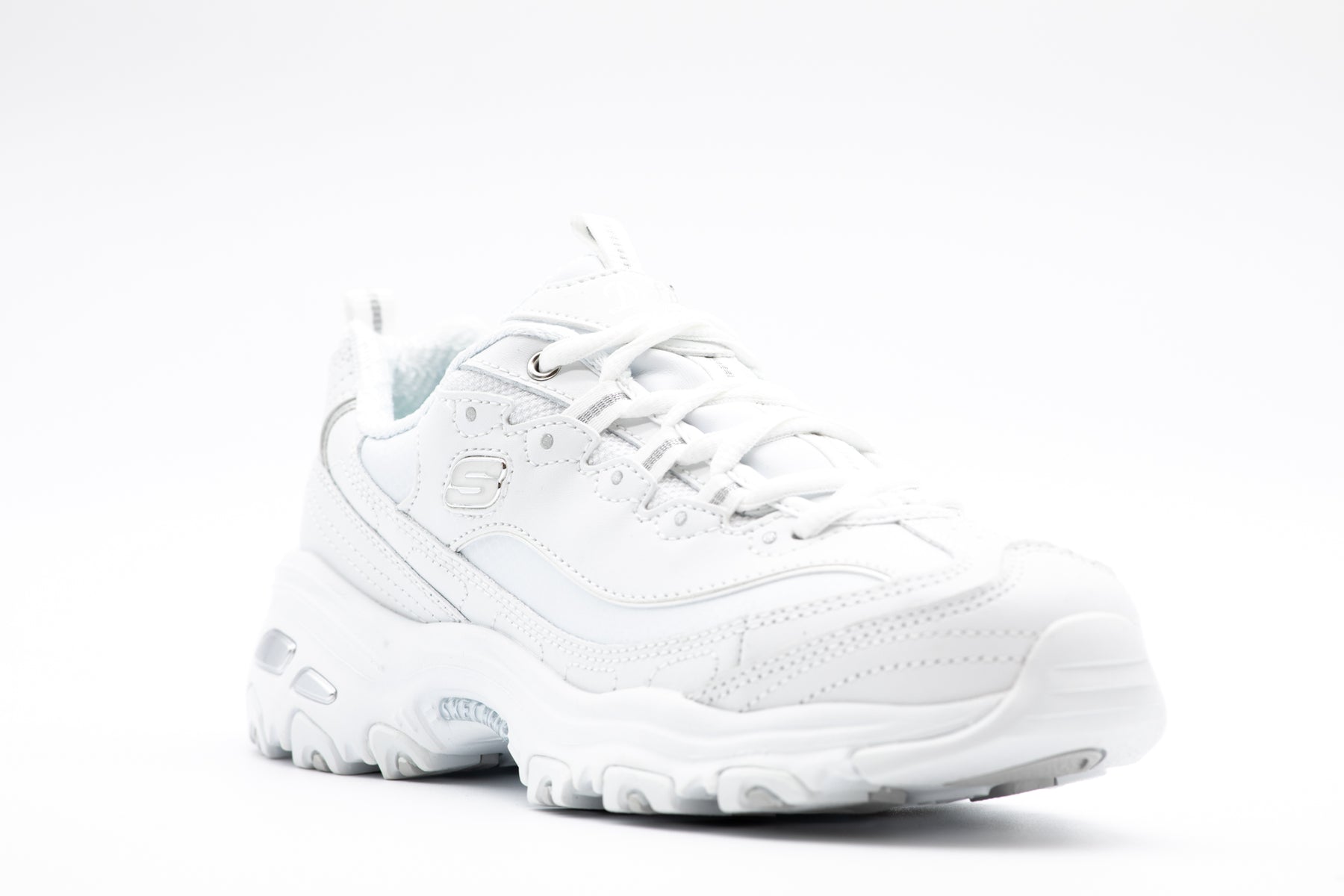 Put your best foot forward in a revitalized classic look with Skechers D'Lites® - Fresh Start. This sporty lace-up style features a smooth leather and synthetic upper with a cushioned Air-Cooled Memory Foam® insole.