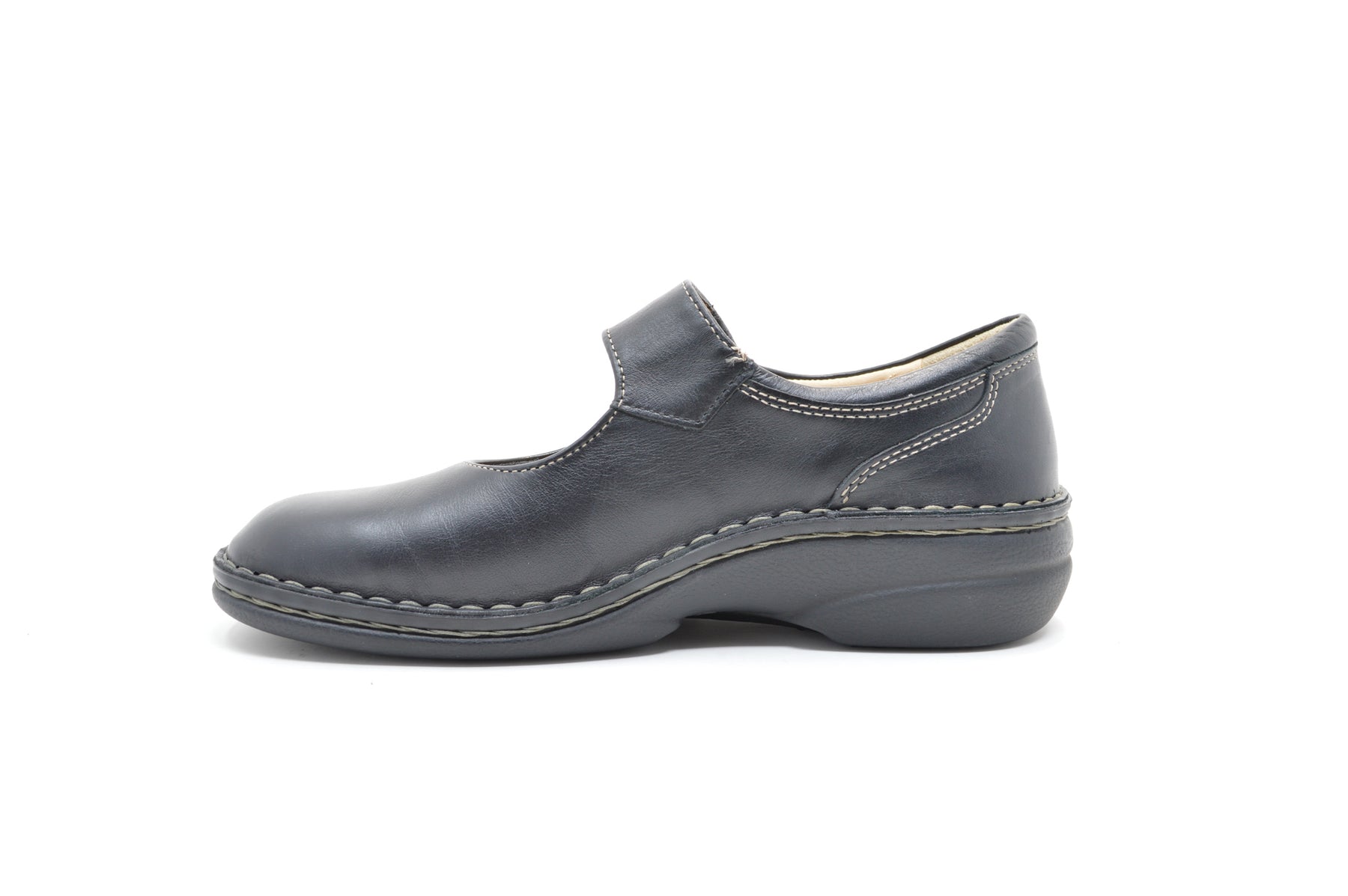 Get into the swing of things with the Finn Comfort Laval mary jane shoe. Handmade in Germany, this women's casual shoe features a premium leather upper and an extraordinarily comfortable, rounded, anatomical shape for natural walking ease. A luxuriously soft, moisture-wicking leather lining and suede sockliner promote air circulation and a healthy interior. A signature Finn Comfort footbed cushions and supports while distributing pressure evenly across the foot to ease impact stresses. The durable, flexible polyurethane rocker sole of the Finn Comfort Laval mary jane shoe gently propels you forward in stability, support and comfort. Adjustable strap with hook-and-loop closure Approx. 1'' heel height Finn Comfort Soft Footbed Metal button detail Padded collar Removable cork and latex-cushioned footbed with metatarsal and arch support Rocker sole Textured nubuck upper Vegetable-tanned leather lining and suede sockliner