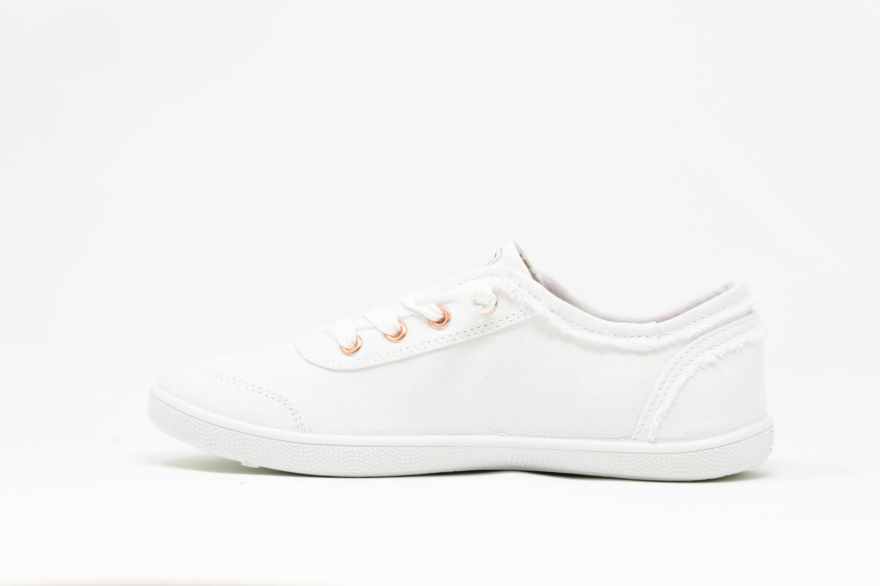 • Laced front with metal eyelets and knotted laces for slip on fit