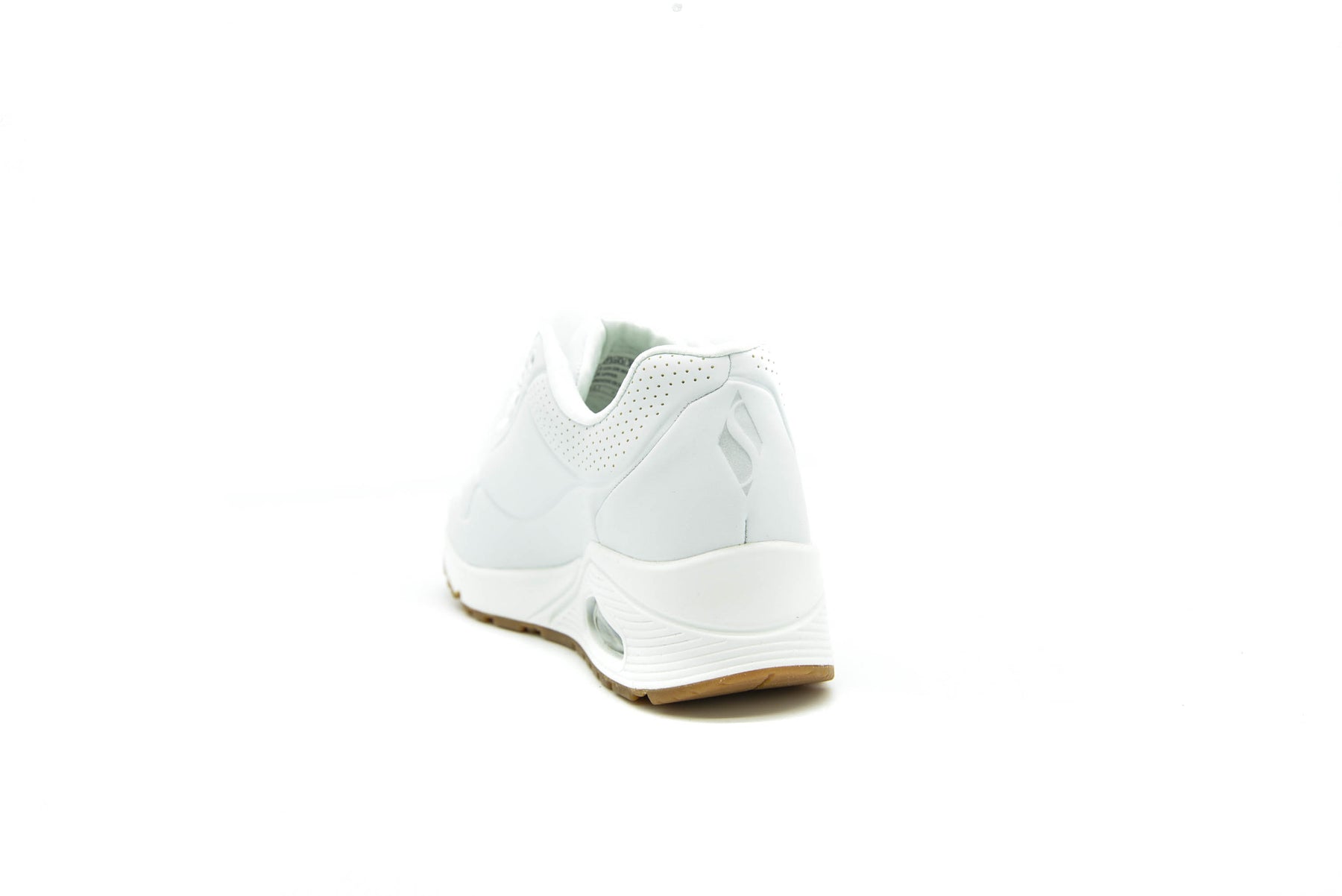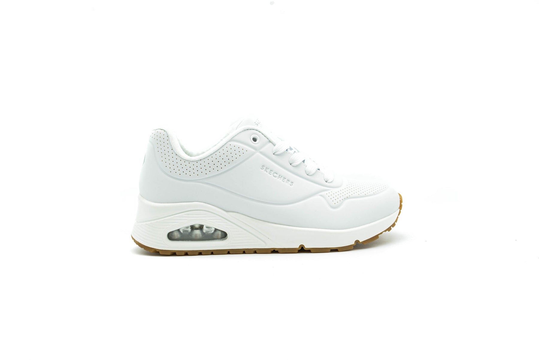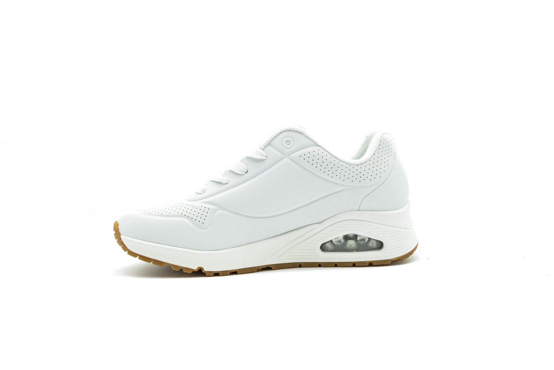 Running Style Classic air-cushioned comfort meets a fresh update in the Skechers Street Street Uno - Stand on Air shoe. This lace-up fashion sneaker features a smooth perforated synthetic upper with an Air-Cooled Memory Foam insole and Skech-Air visible air-cushioned midsole.