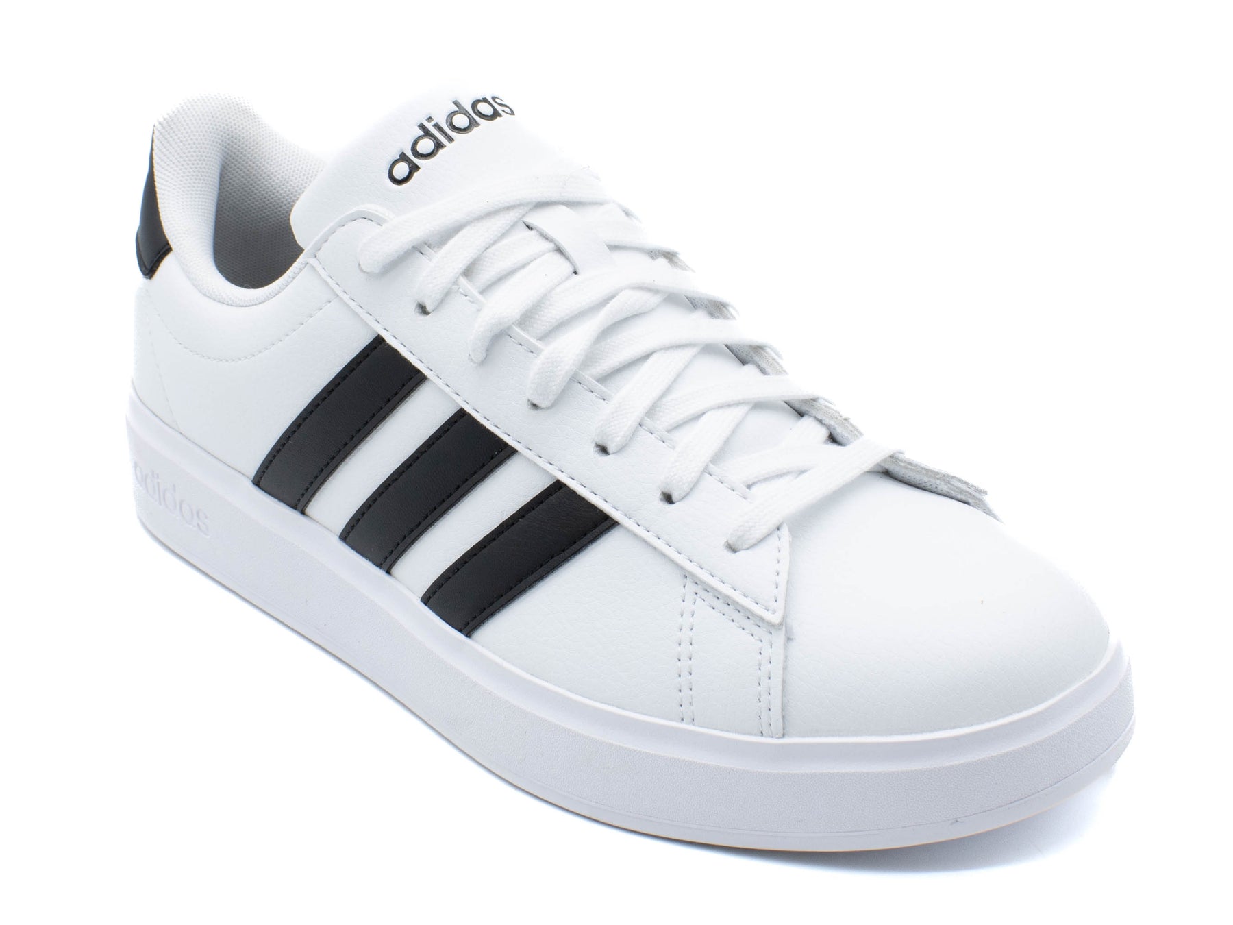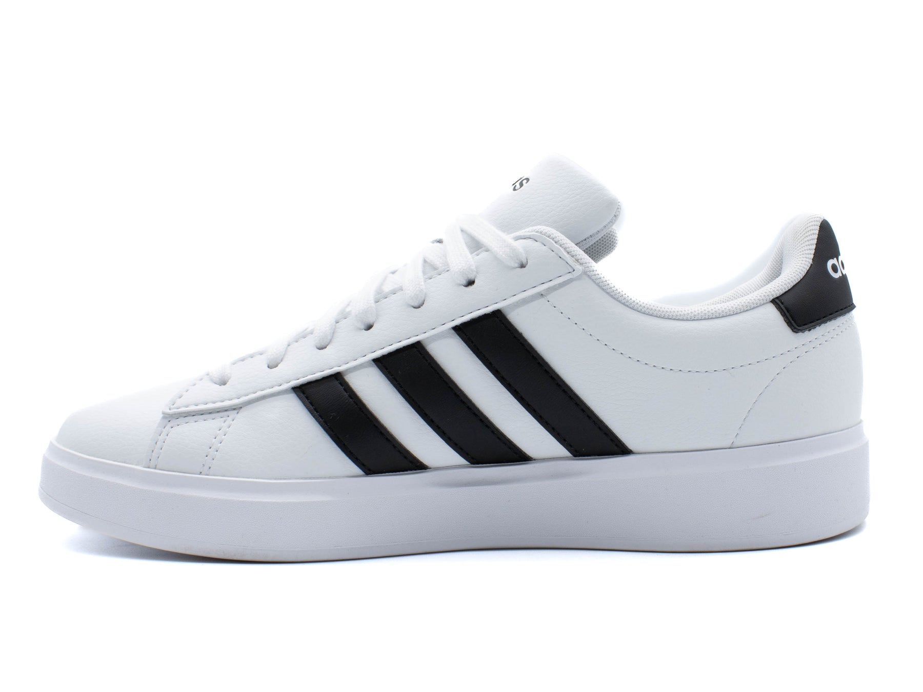 Adidas Girls Grand Court Sneakers Refresh your classics with these trainers from Adidas. Designed with a faux leather upper, this pair boasts Adidas' three stripes to the sides in a contrasting colour to add an update to the iconic 70s style. Sat on a rubber sole with a lace up closure, this pair is finished with the Adidas logo at the tongue.