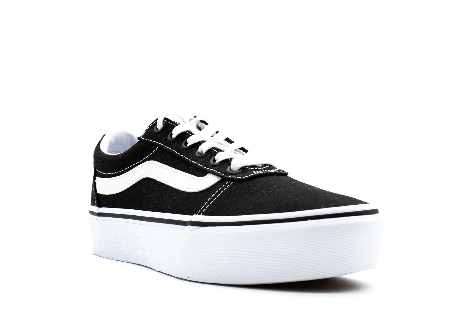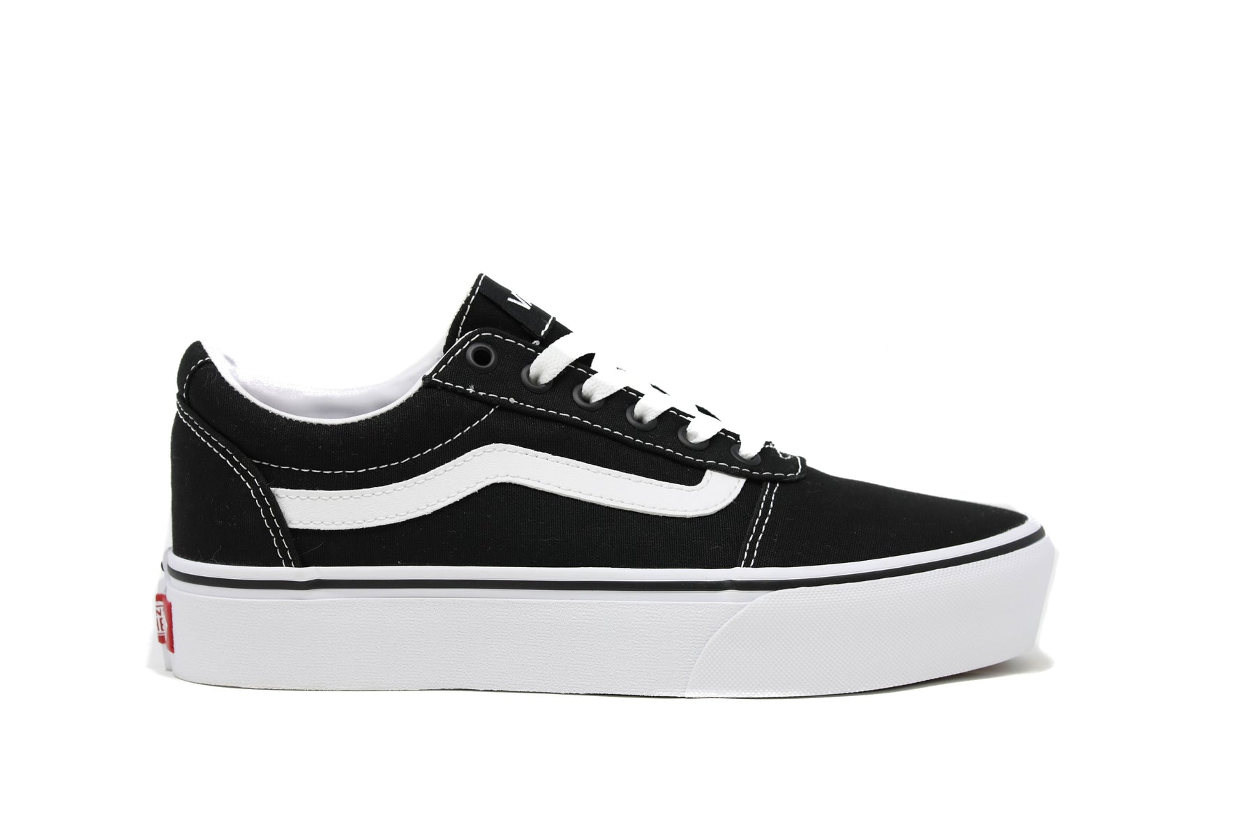 Show the world you know what's up with the rebel style of the Ward Platform black/ white lace up sneakers from Vans. You can't go wrong with a classic canvas/ suede sneaker and the Ward from Vans is a versatile choice. This low-top will pair with nearly any casual outfit! This style combines the original and now iconic Vans low top style with sturdy canvas/suede uppers, metal eyelets, and signature rubber waffle outsoles.
