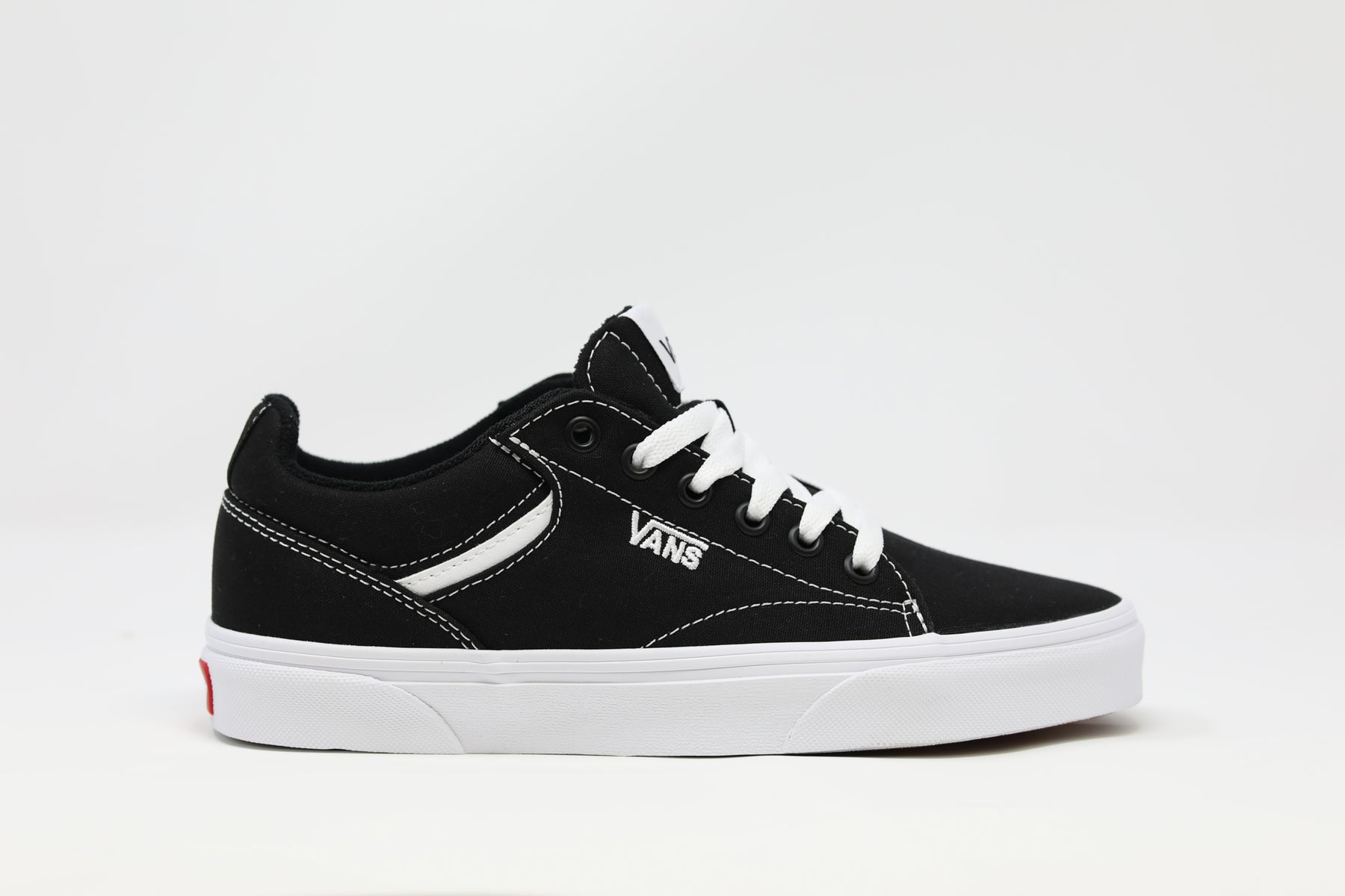 Show the world you know what's up with the rebel style of the Seldan black/ white lace up sneakers from Vans. You can't go wrong with a classic canvas sneaker and the Seldan from Vans is a versatile choice. This low-top will pair with nearly any casual outfit! This style combines the original and now iconic Vans low top style with sturdy uppers, metal eyelets, and signature rubber waffle outsoles.
