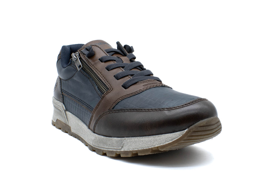 On the fashion radar! Go for maximum comfort and ultimate style with these ocean blue sneakers by Rieker. The lacing complements the zipper and thus guarantees optimal support and perfect fit. The robust profile sole provides sure-footedness. The sneakers are super comfortable thanks to the especially breathable leather insole. A feel-good factor on top is the comfort width G 1/2, which offers more space in the shoe. Fashionable well-being in the style of Rieker!